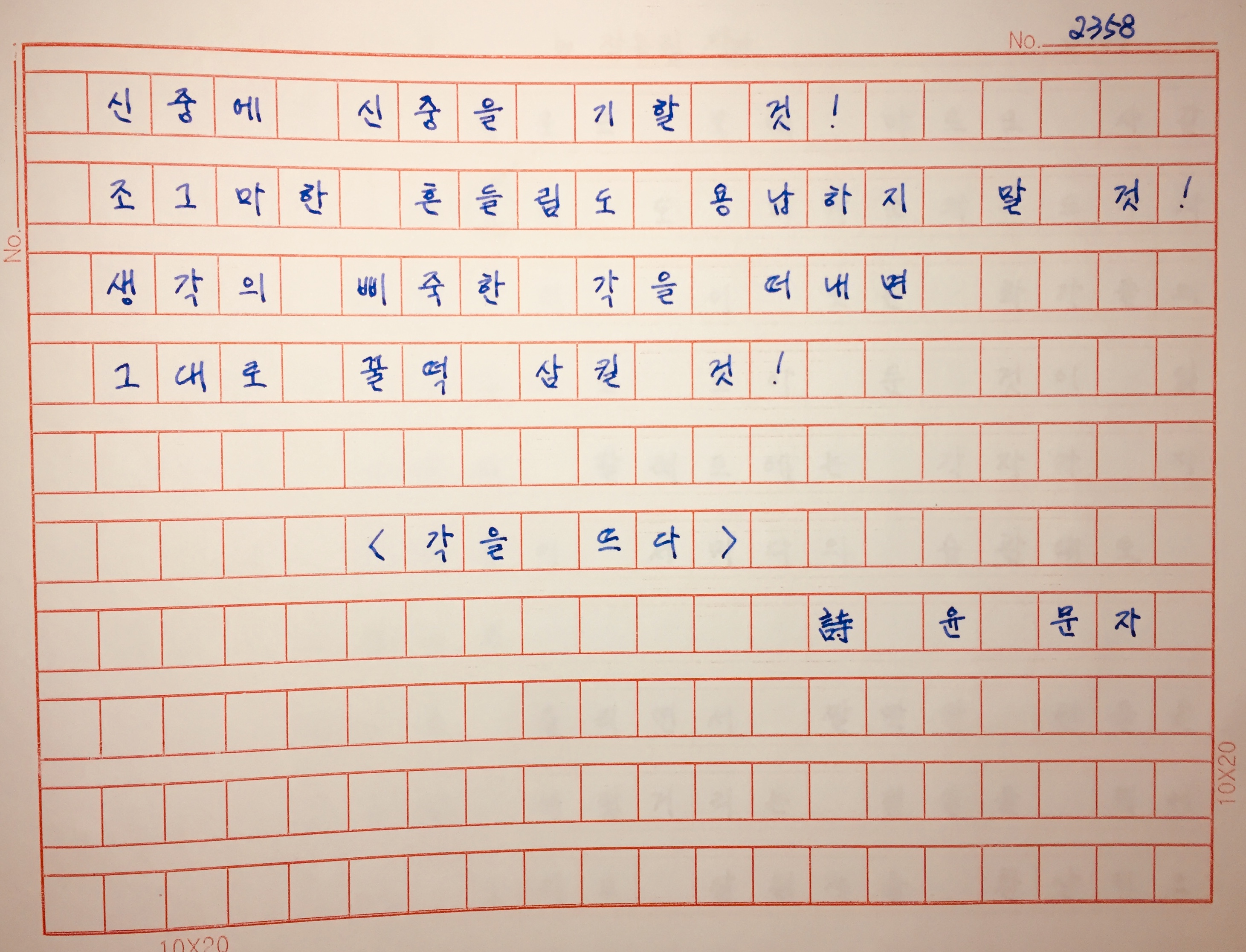 허리를 곧게 세우게 하는 시.