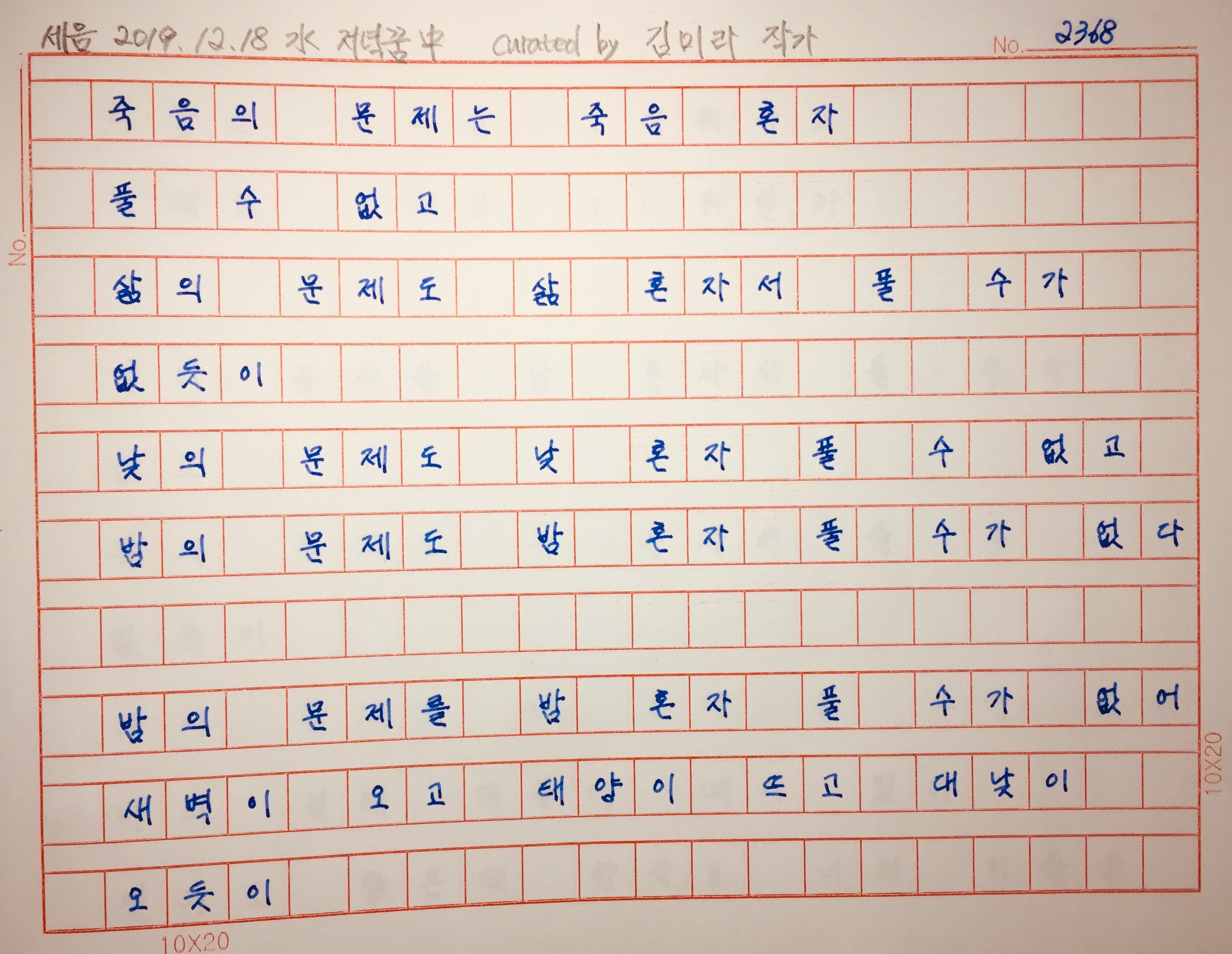 죽음의 문제를 함께 풀어주는 삶이 있어서 외롭지 않습니다.