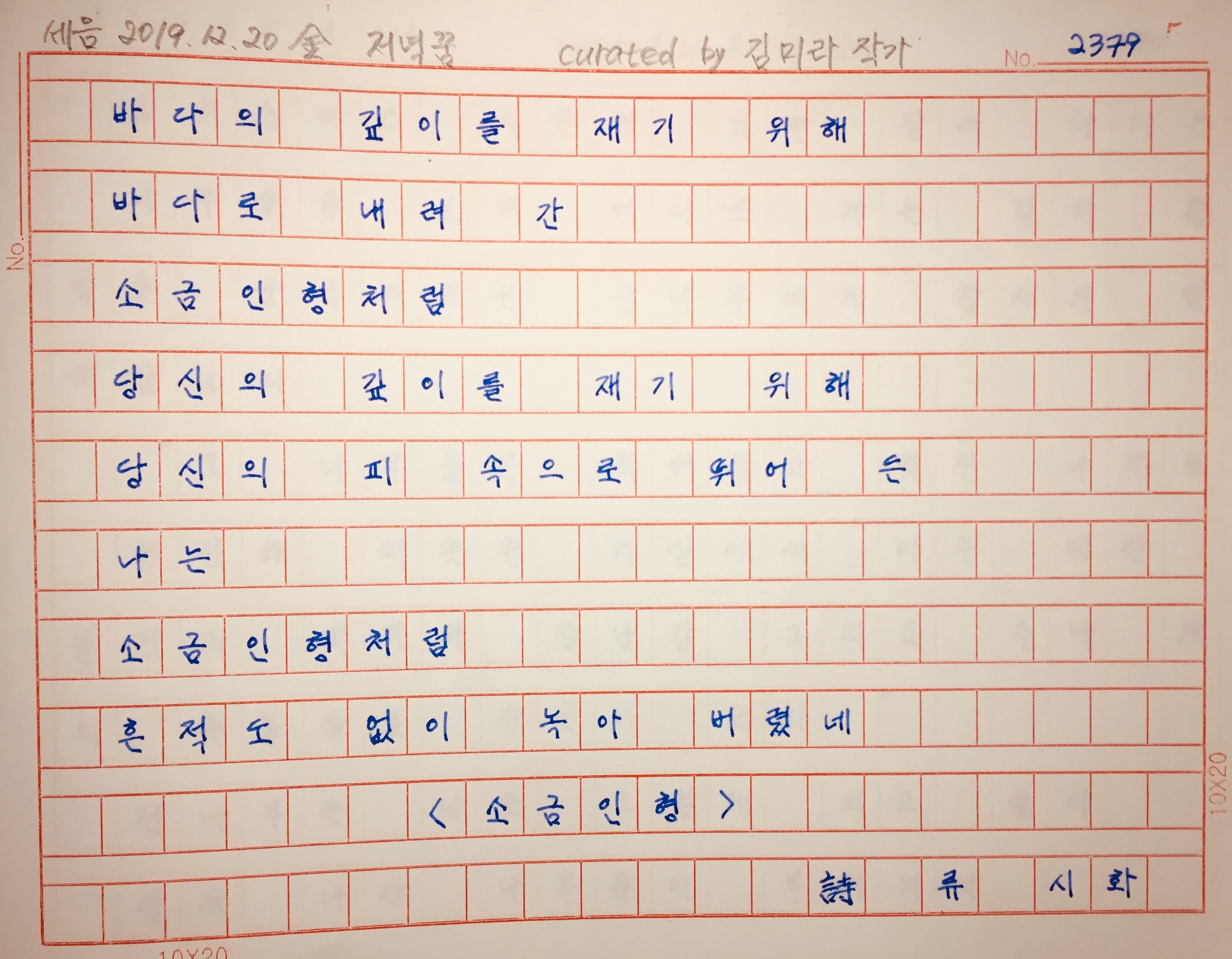 | 김승희 시인 「아무도 아무것도」 (0) | 2020.01.26 |