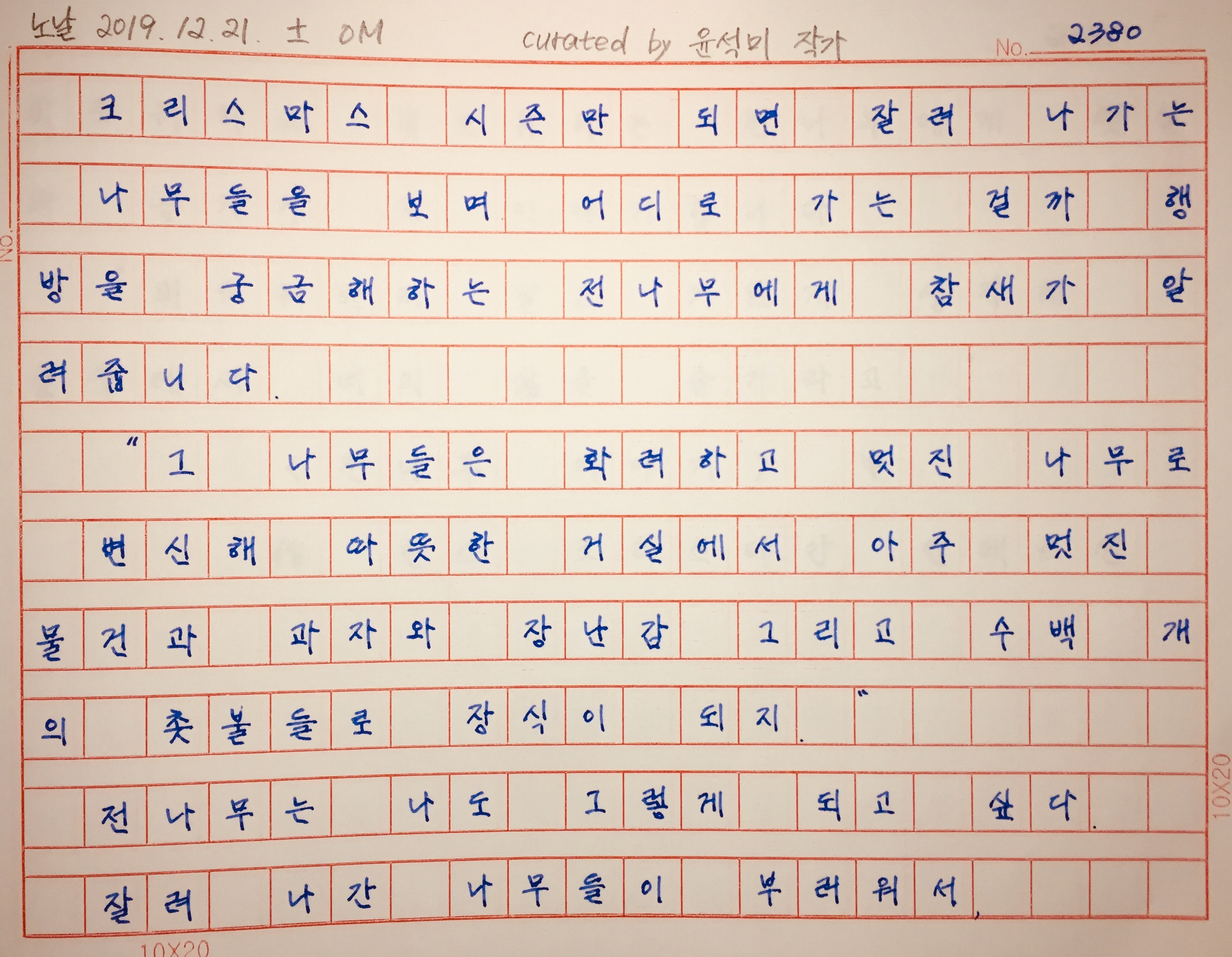 숲속에서 크리스마스 트리가 되고 싶어 즐기지 못했던 시간들.