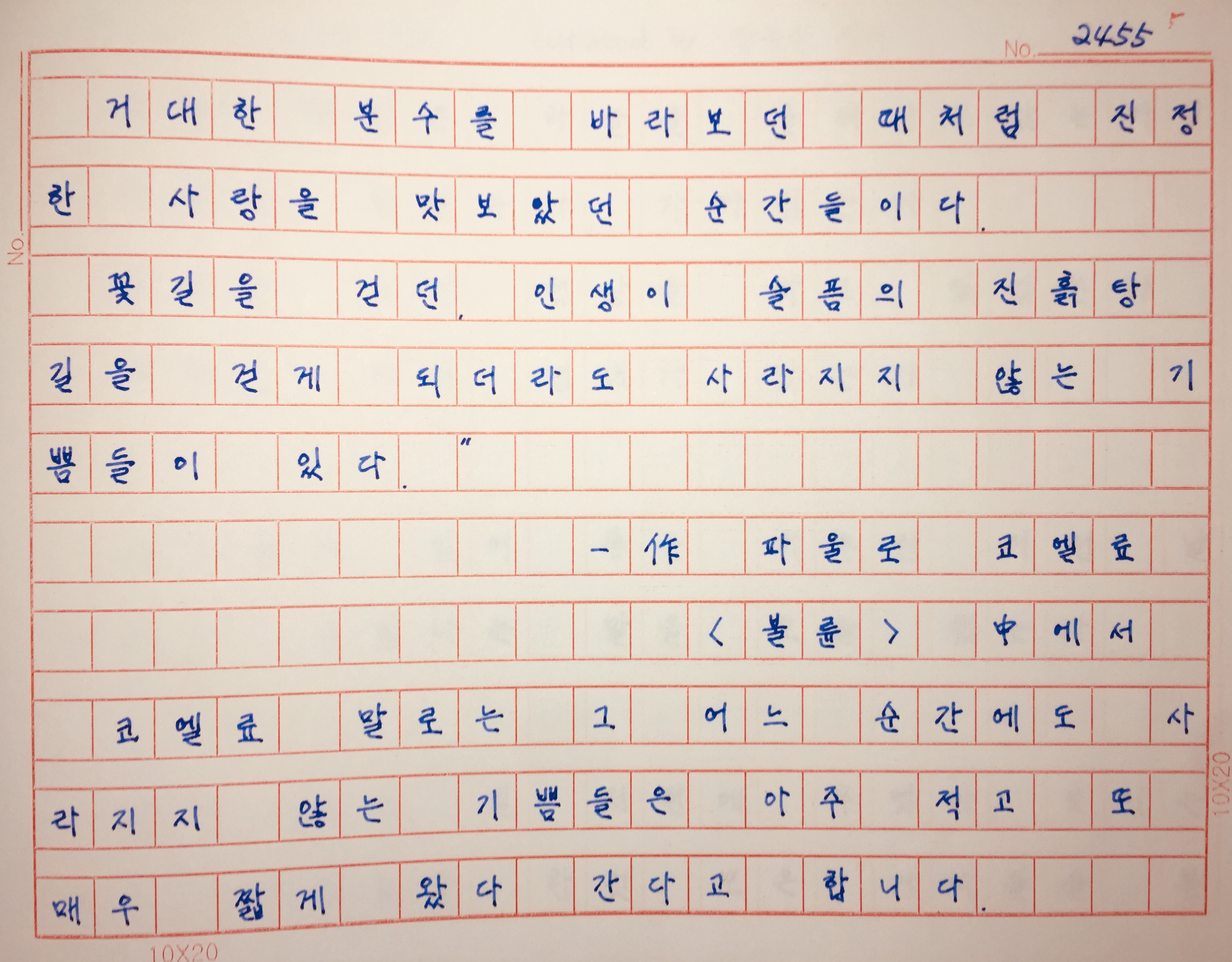 아마도 기쁨은 굵고 짧게, 슬픔은 가늘고 길게 왔다 가는 듯 합니다."