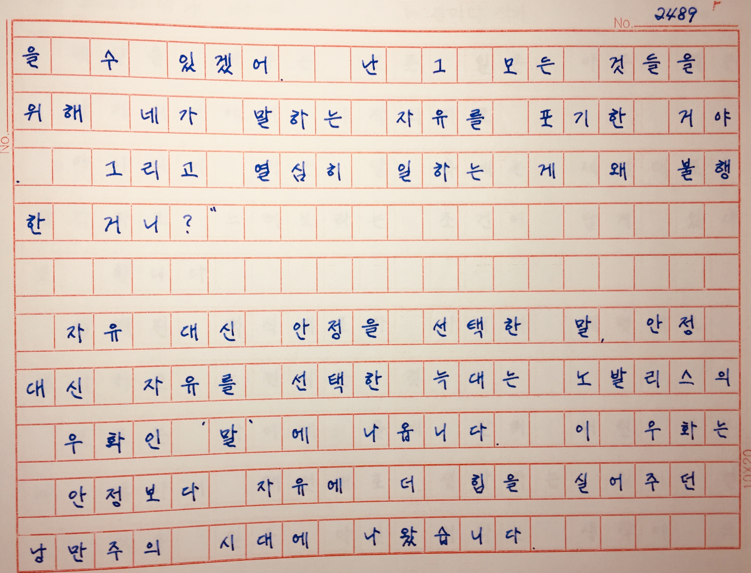 "안정과 자유 둘 중 어느 것을 우선 순위로 삼고 살아가든,