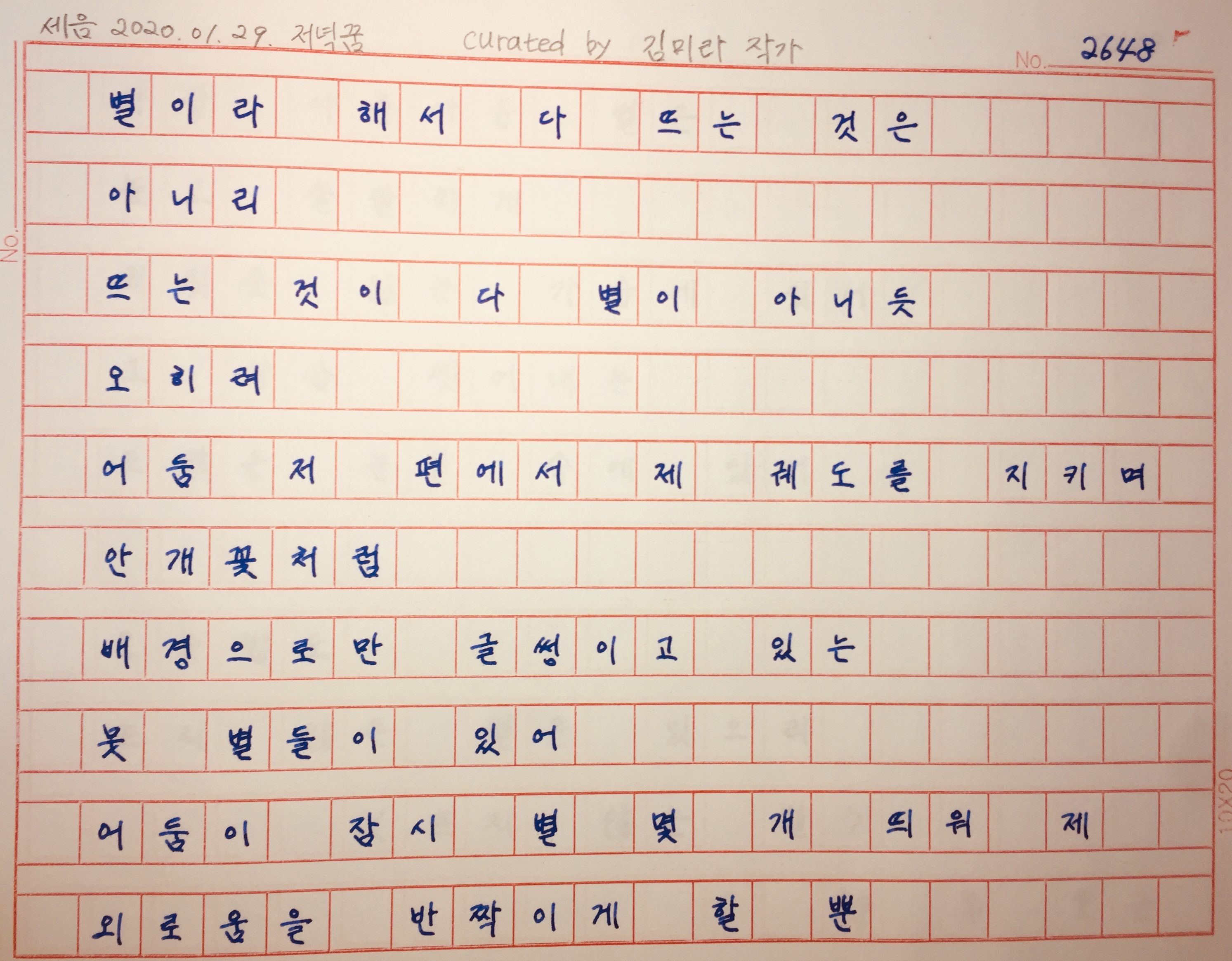 오늘도 밤 하늘에는 뜨지 않는 별들이 많았겠다 싶네요."