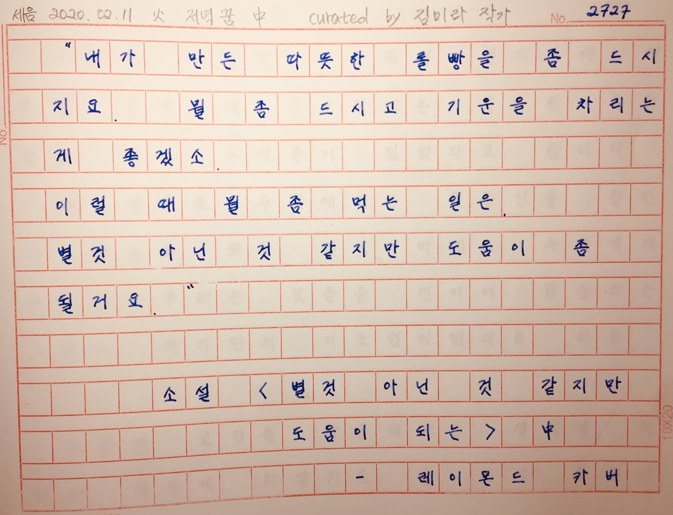 레이몬드 카버가 전하는 이 짧은 문장이 위로가 되어 주기를 바랍니다."