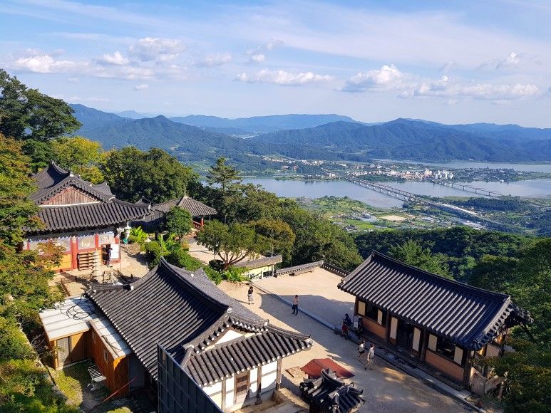 "남한강과 북한강 두 개의 강물이 만나는 두물머리에 있는 사찰.