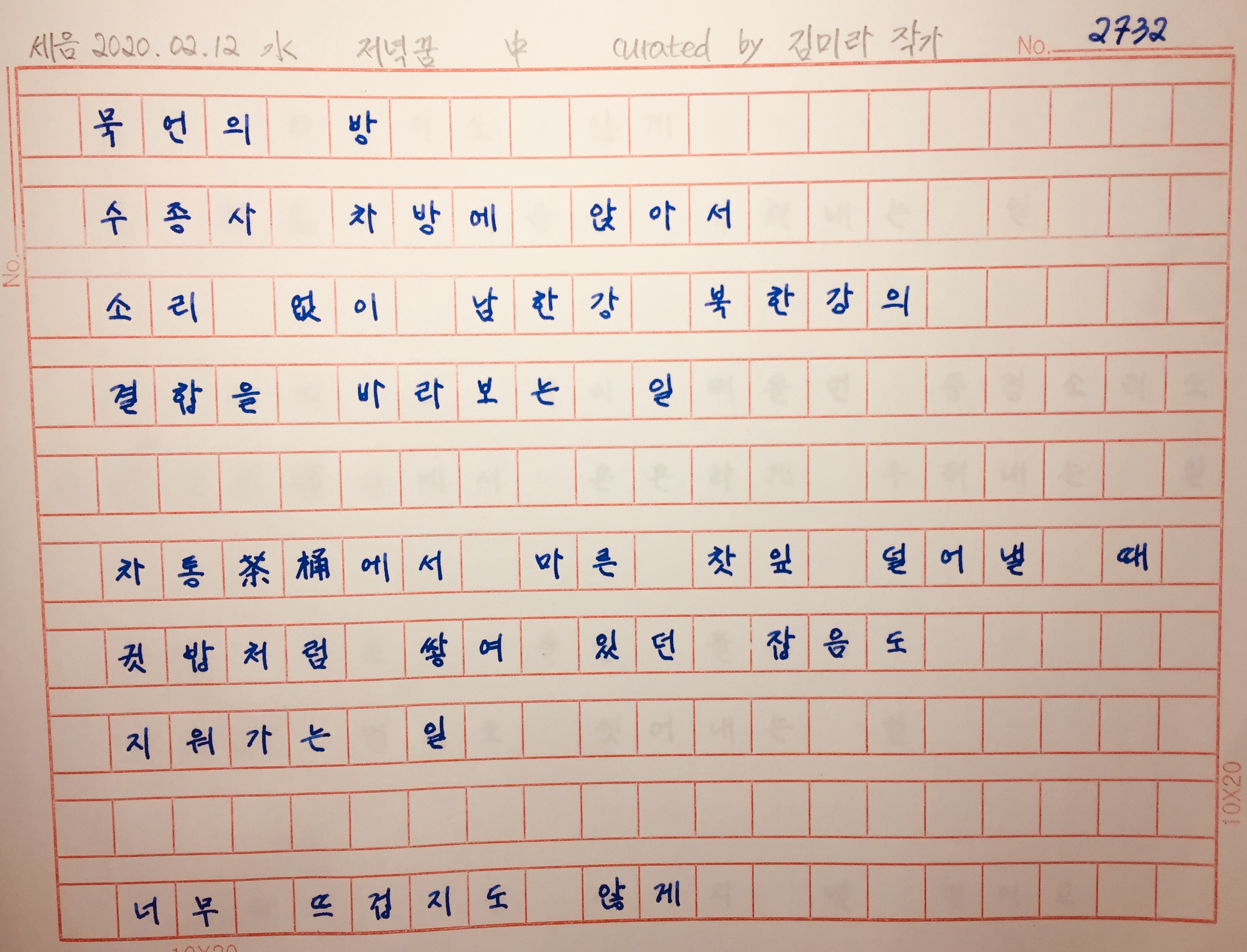 시인이 마련해 준 묵언의 방에서 뜨거운 찻물이 은은해질 때까지,
