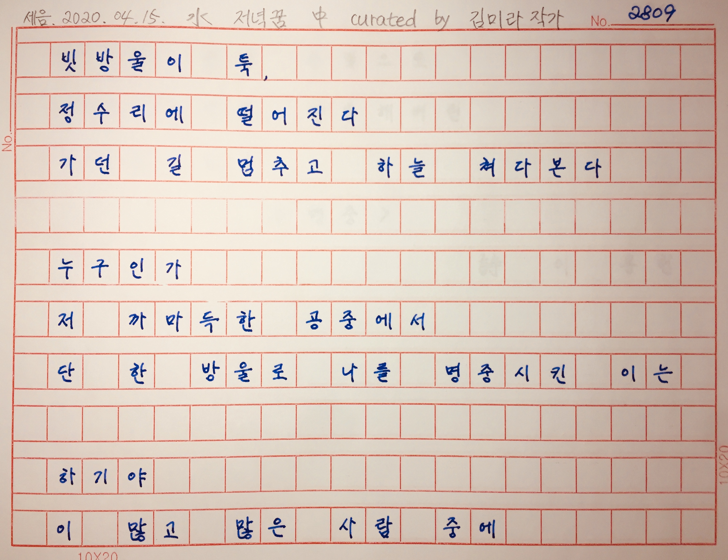 엄청난 확률을 뚫고 정확히 내게 꽂힌 빗방울.