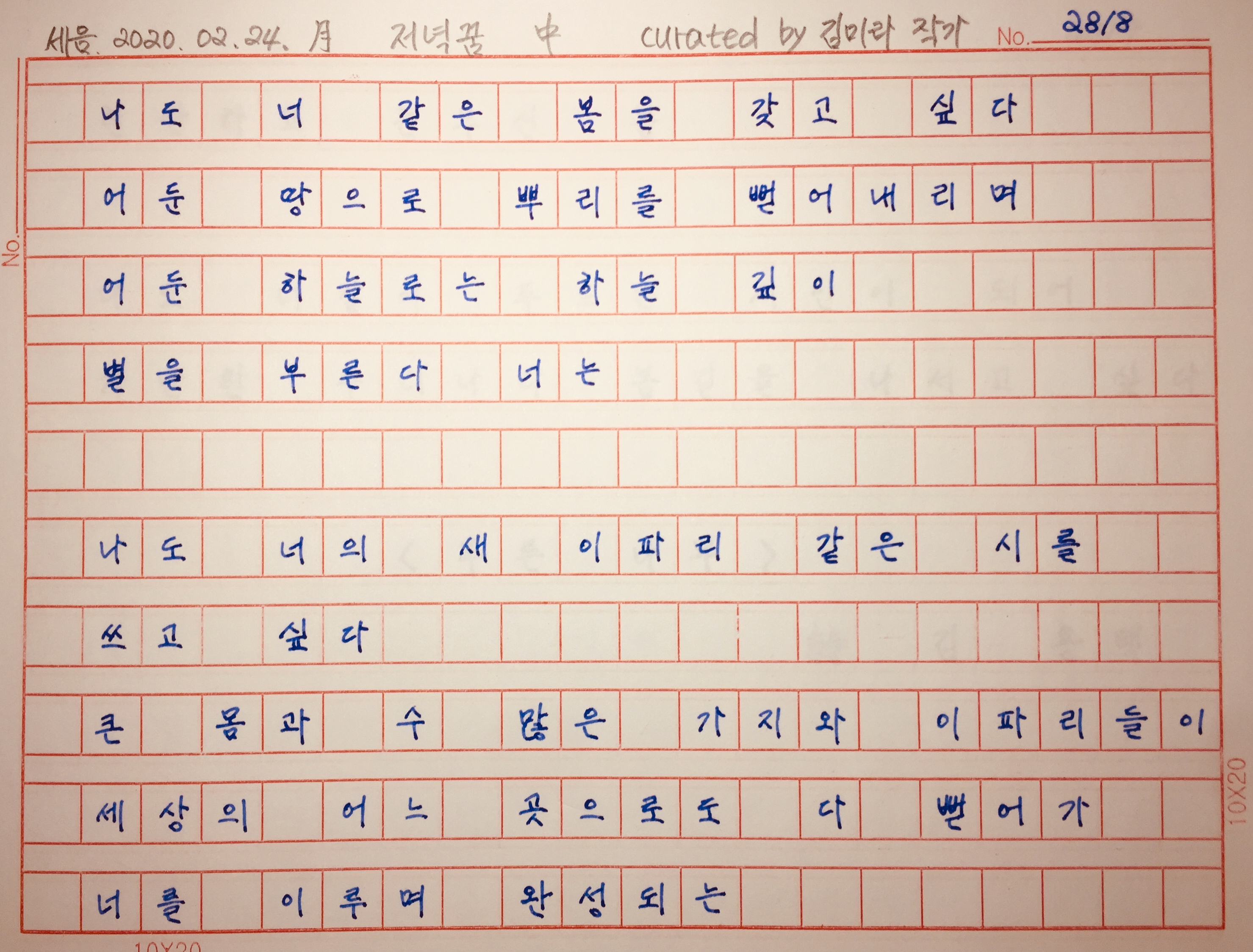 마스크 없이 외출할 수 있고, 화사한 햇살 아래 걸어볼 수 있는 봄날이 아직은 멀게 느껴지지만.