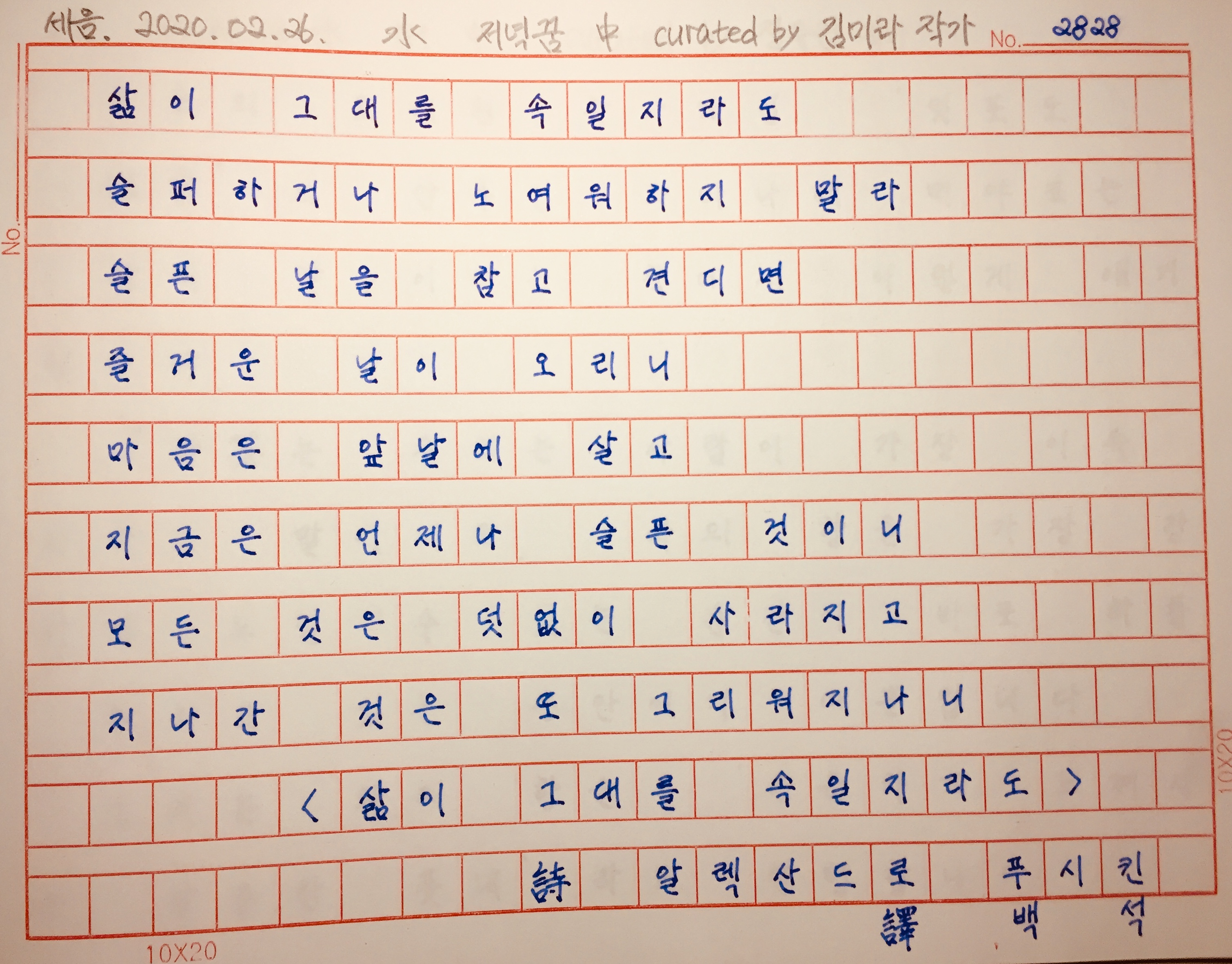 러시아어로 수백 번 암송할 정도로 백석은 이 시를 좋아했다고 하지요.