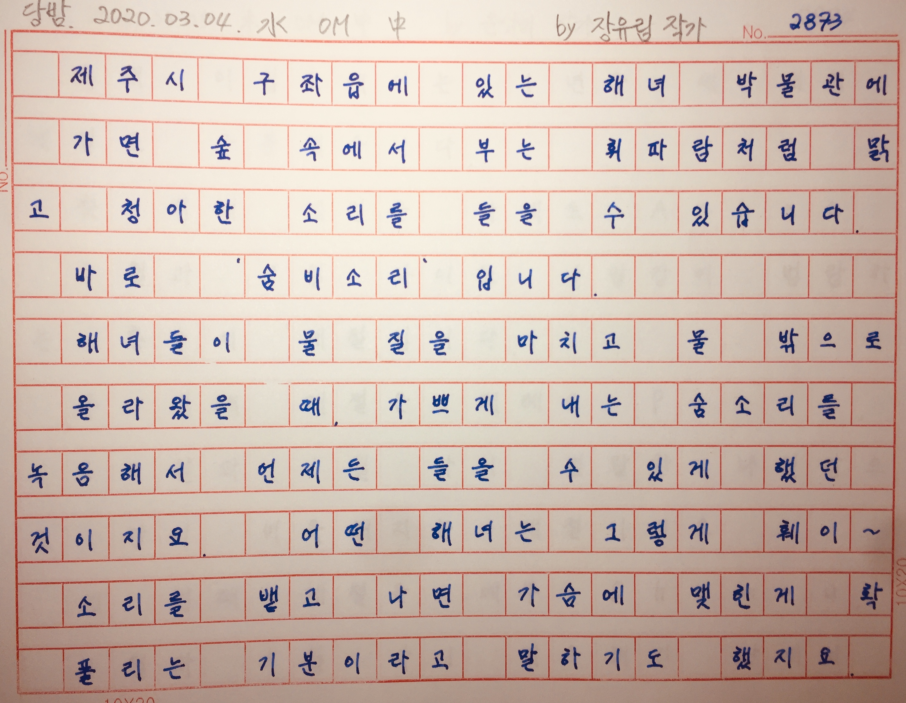 이 힘겨운 물질이 어서 끝나서 시원스러운 숨비소리가 여기저기서 터져 나오는 그 날을 기다립니다."