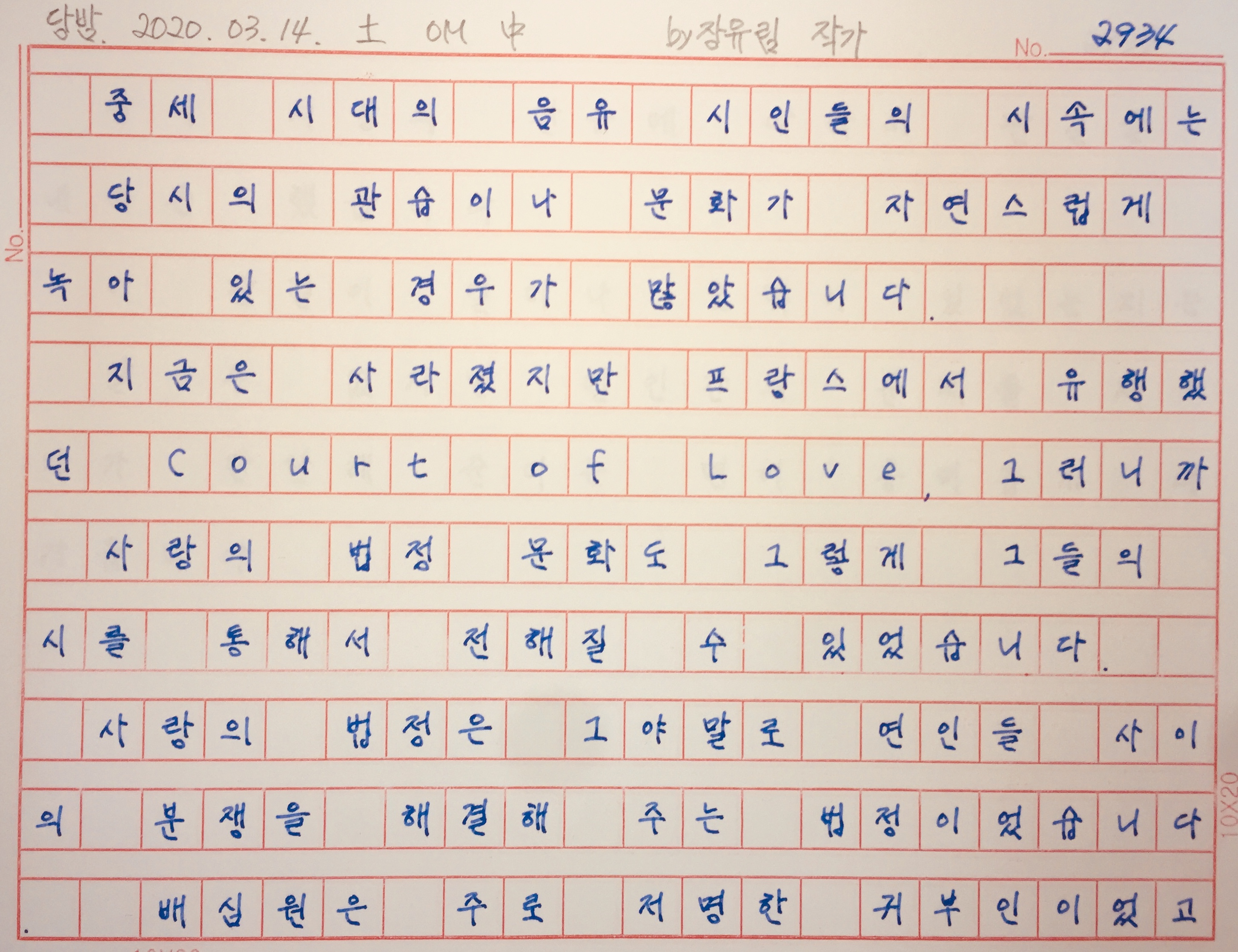 "3월 14일 오늘은 또 얼마나 많은 연인들이 서로를 사랑의 법정에 올리고 싶어 했을지 궁금해지는군요."