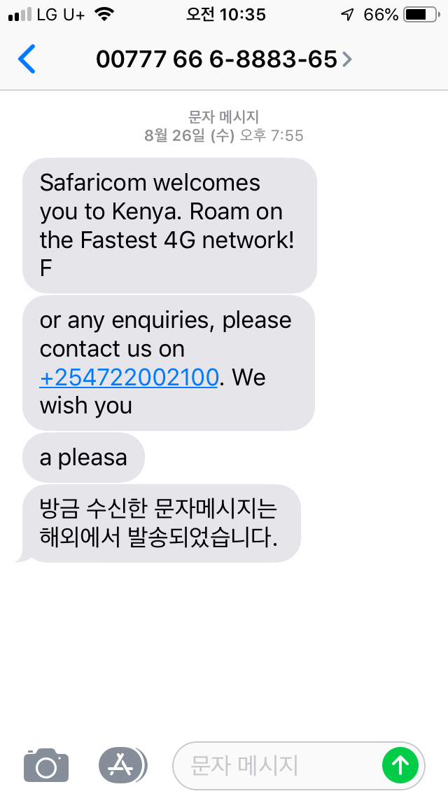 어느 나라나 그렇듯, 그 나라 이동 통신사의 문자 메시지가 환영의 인사를 먼저 건네왔다.