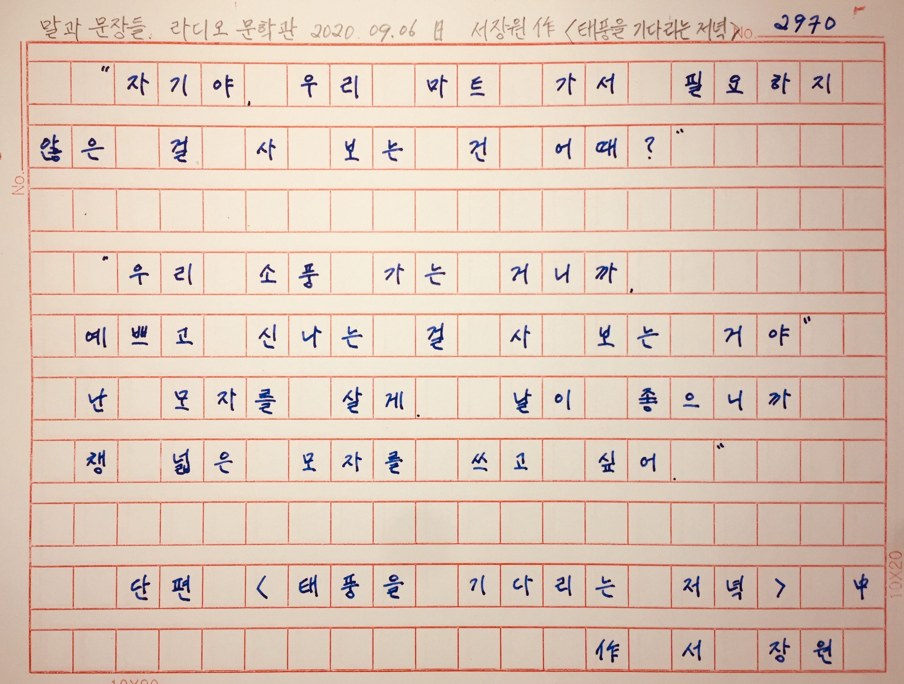 “한국 단편 문학 특선” 서장원 작가, <태풍을 기다리는 저녁> 중에서