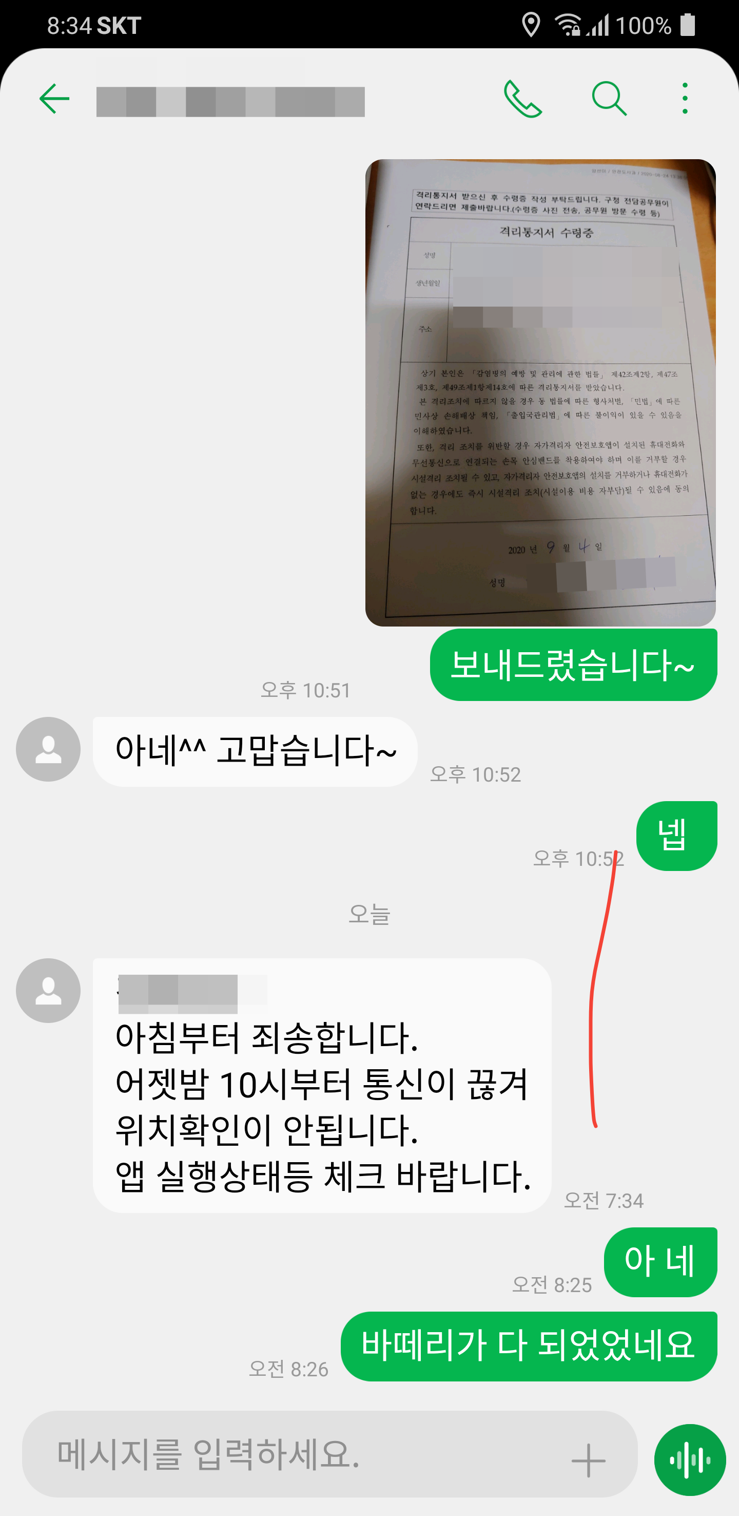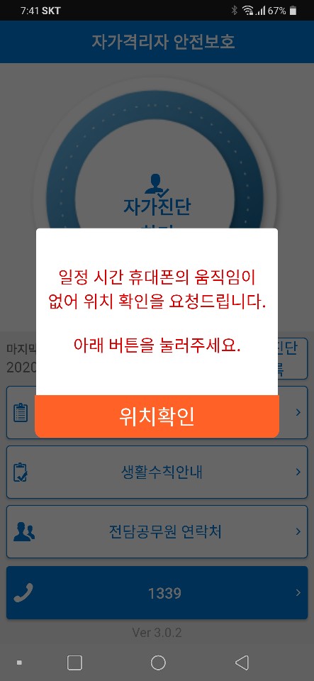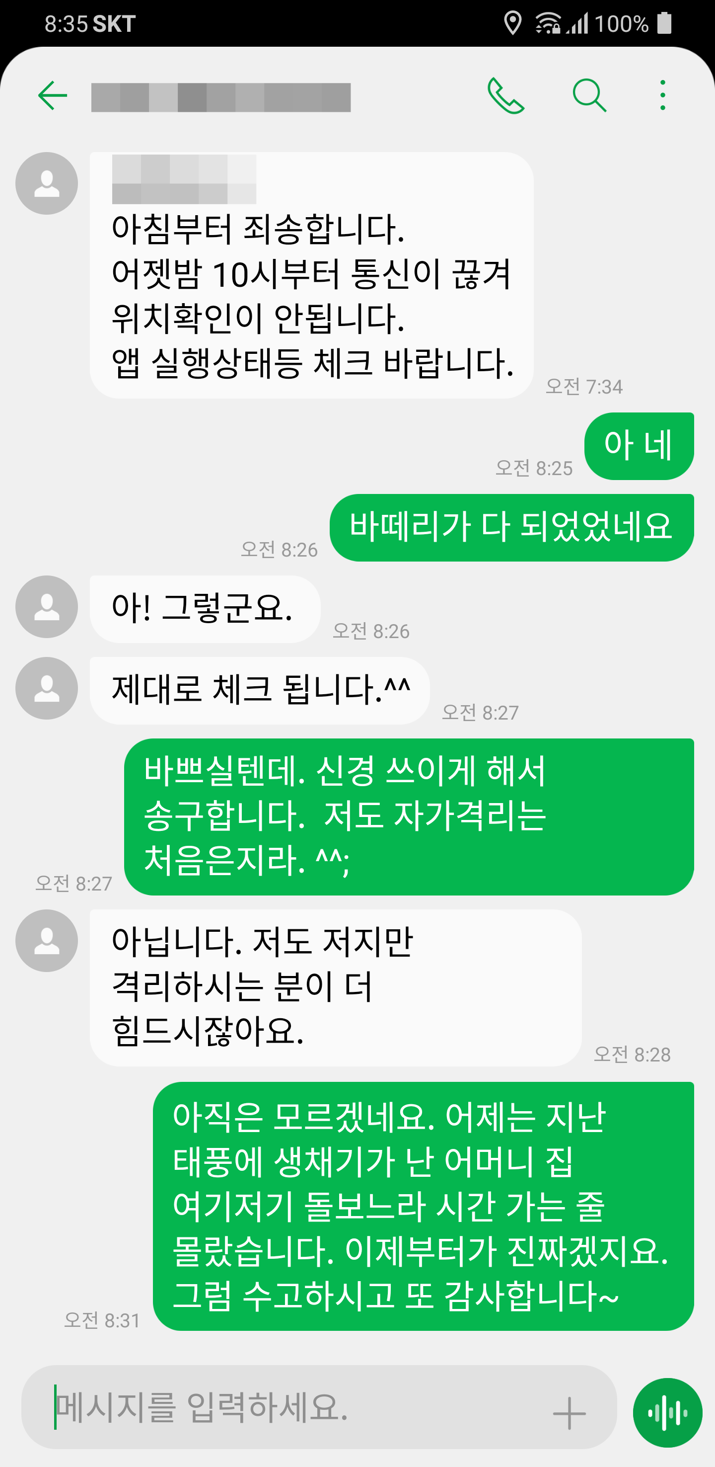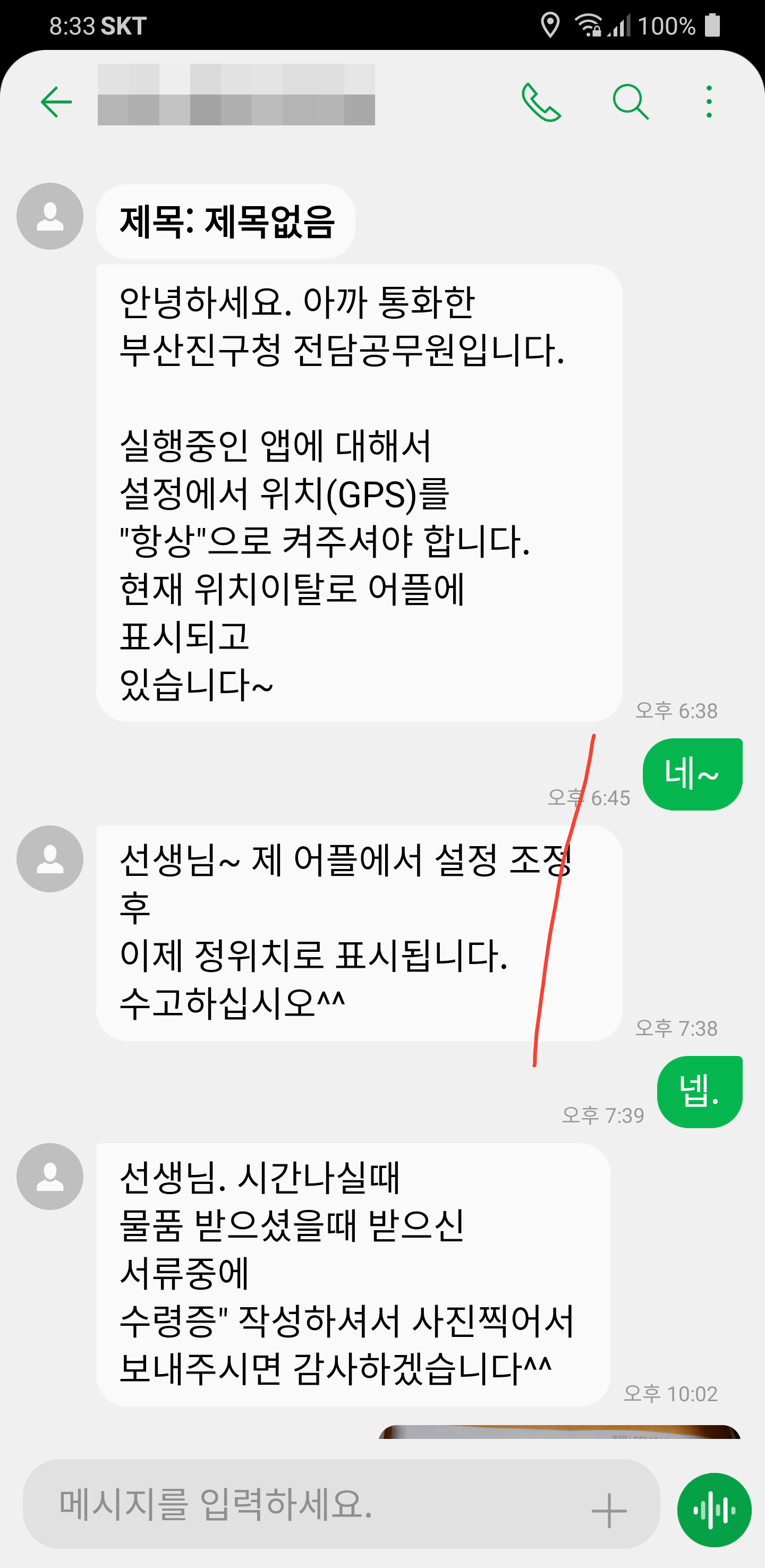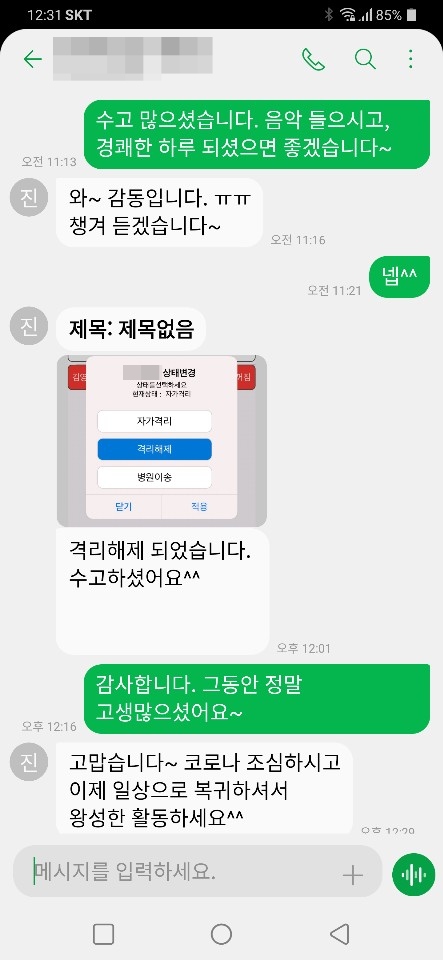 이어서 자가 격리자 보호 앱에 입력해야 할 나의 전담 공무원으로부터도 전화 연락이 왔고, 오후에는 문자도 왔다.