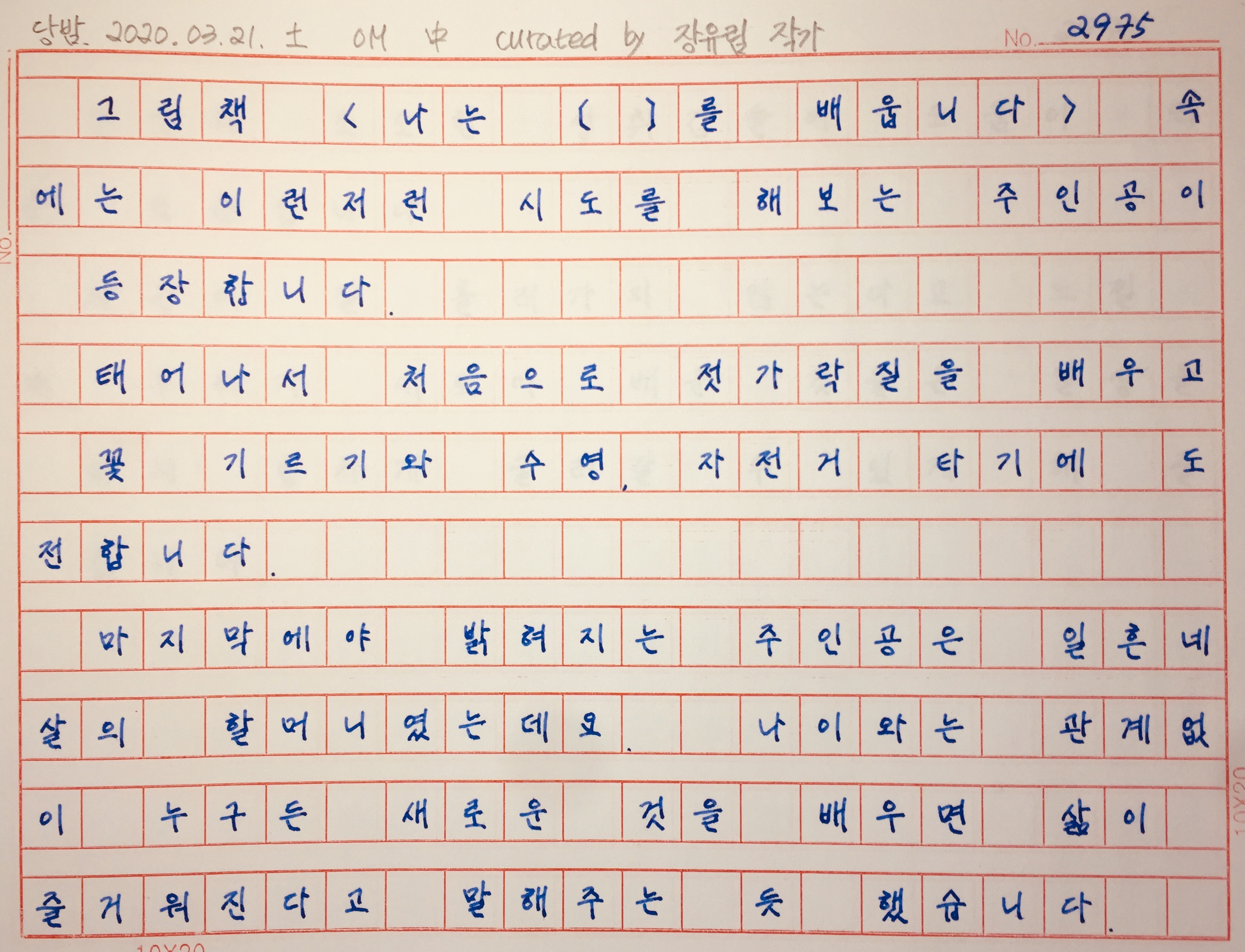 시간이 잘 흘러가지 않는다고 느낄 때, 우리가 새로이 배운 것들은 일상을 다시 힘차게 굴러갈 수 있게 해 줄 겁니다."