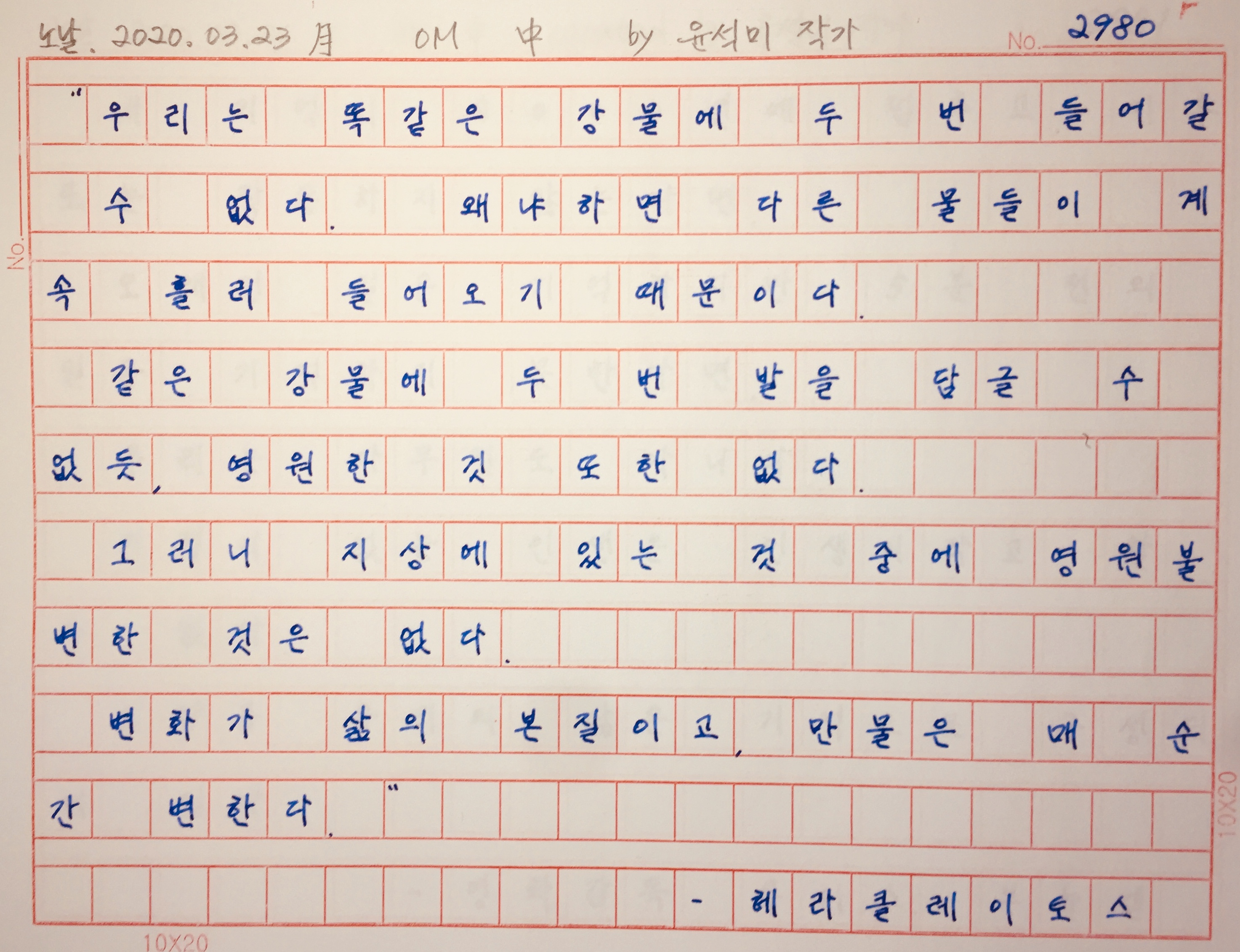 지우개로 헤라클레이토스의 판타레이를 써 보시면 어떨까요."