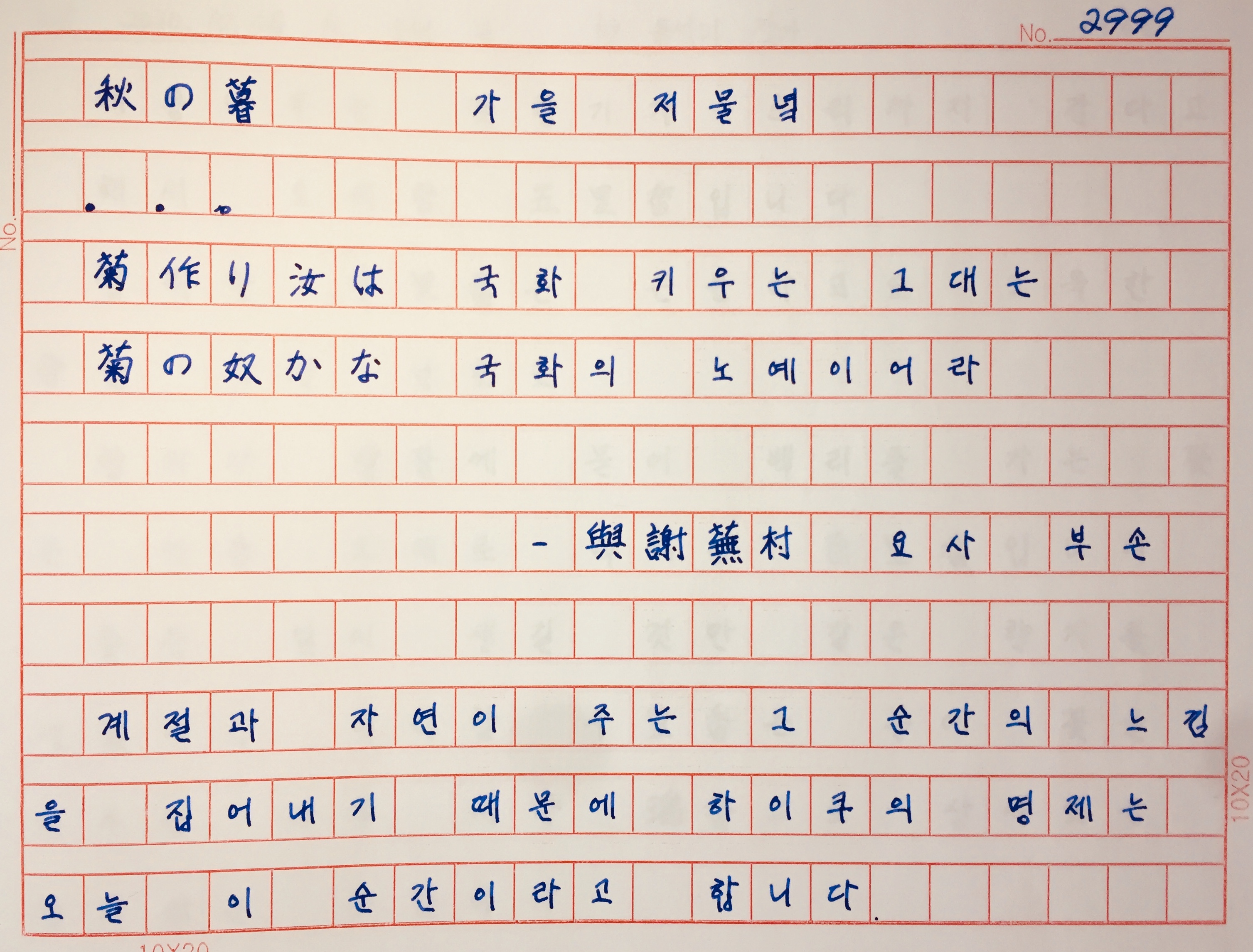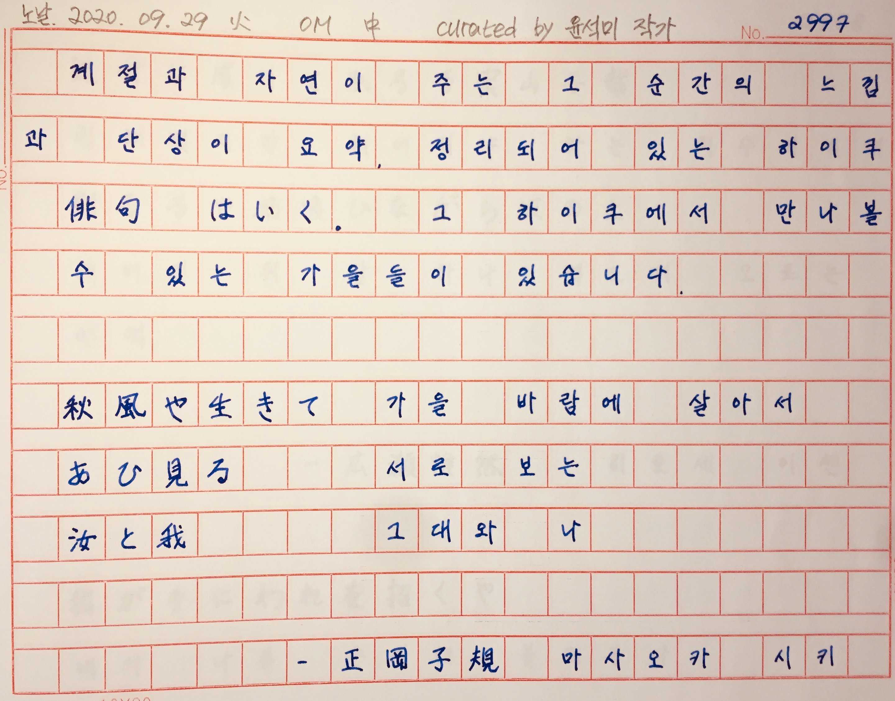 '봄에 쓰는 가을의 하이쿠가 없고, 가을에 쓰는 봄의 하이쿠가 없듯이, 유일한 진실은 지금 이 순간에 피는 꽃'