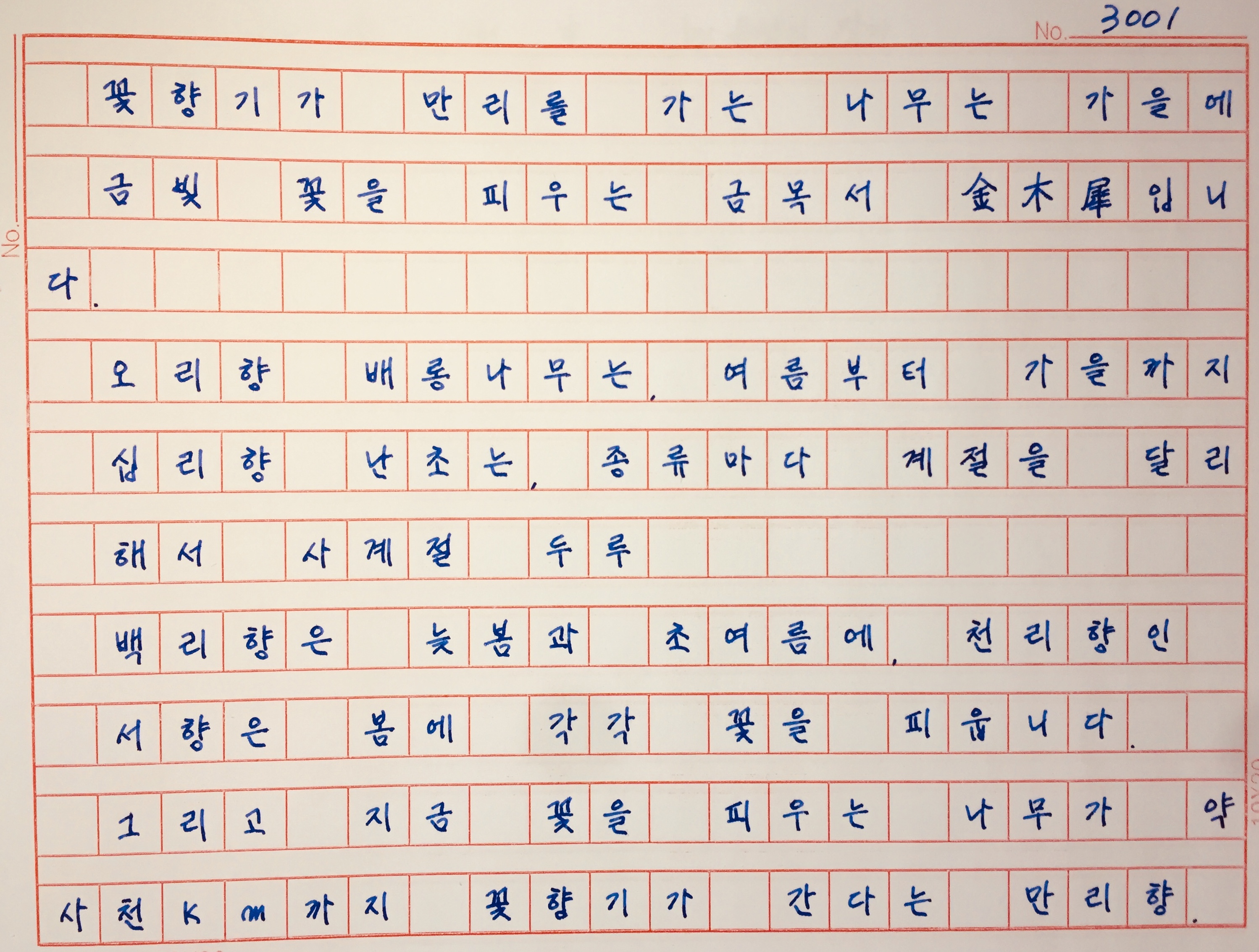 가을을 타는 마음도 만리향을 닮아서 사천 킬로미터를 떨어져 있어도 서로 서로 알아줄 수 있다면 참 좋겠습니다."