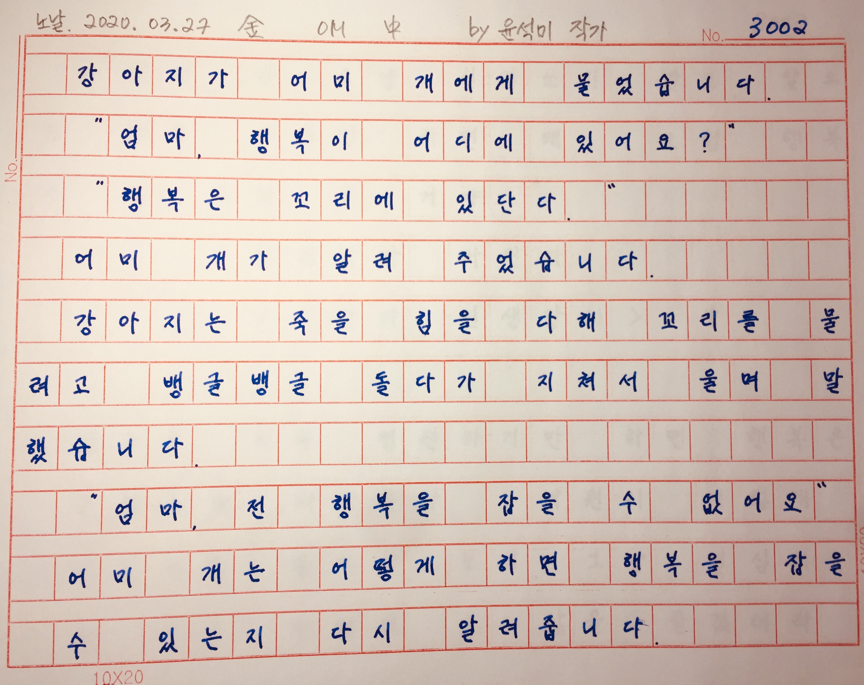 행복은 잘 보이지 않는 것 같습니다. 우리의 뒤에 있다고 하네요."