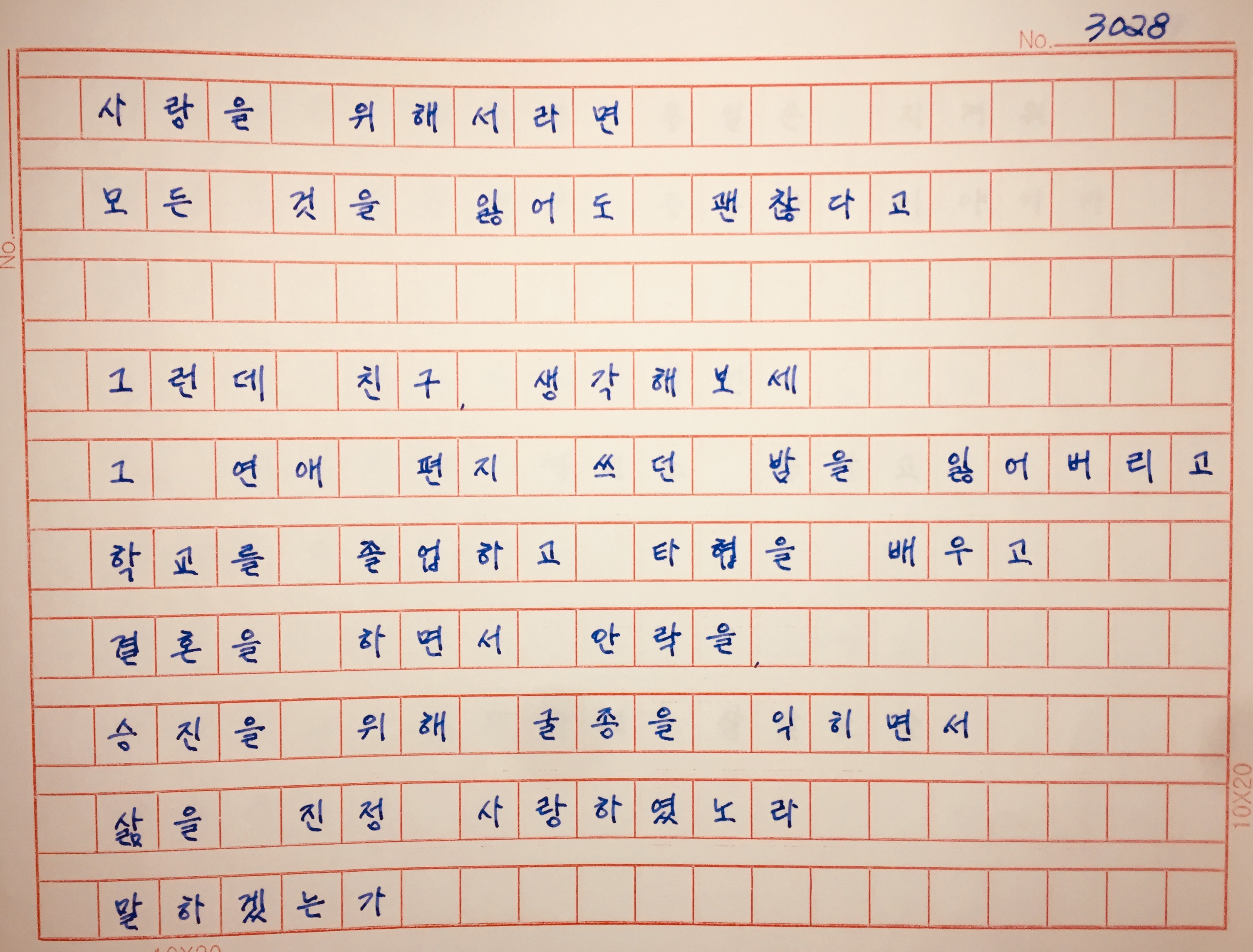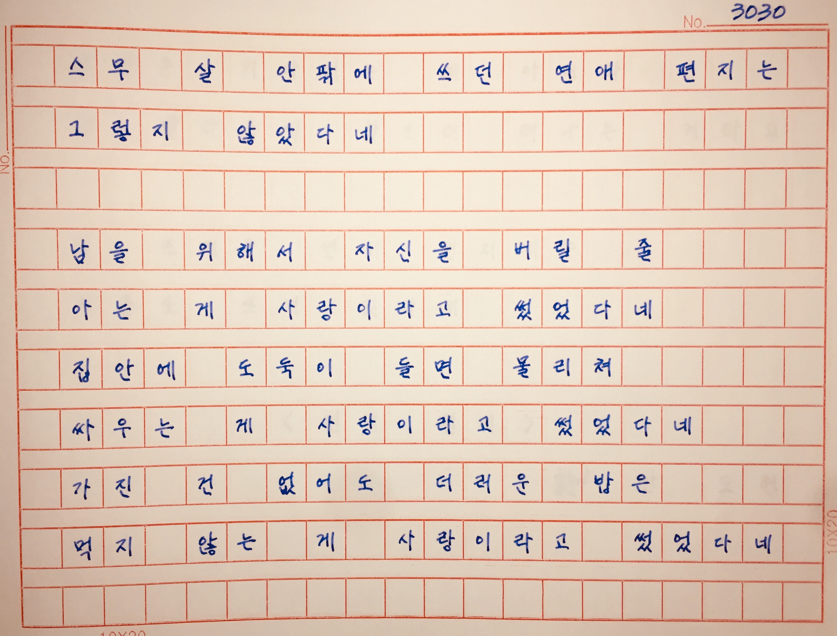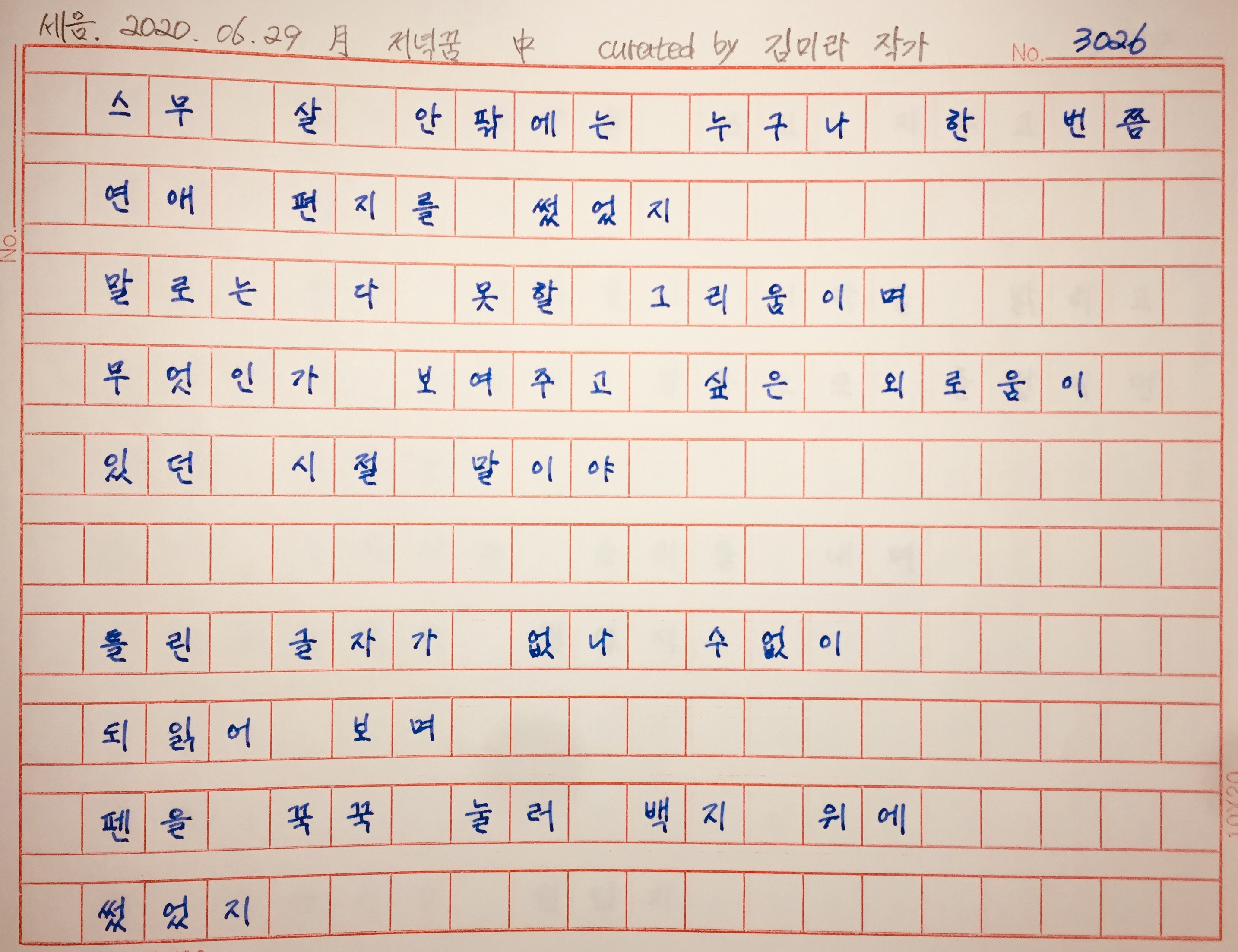 스무 살의 연애보다는 서툰 연애편지를 쓰던 내가 그리워지고는 합니다.