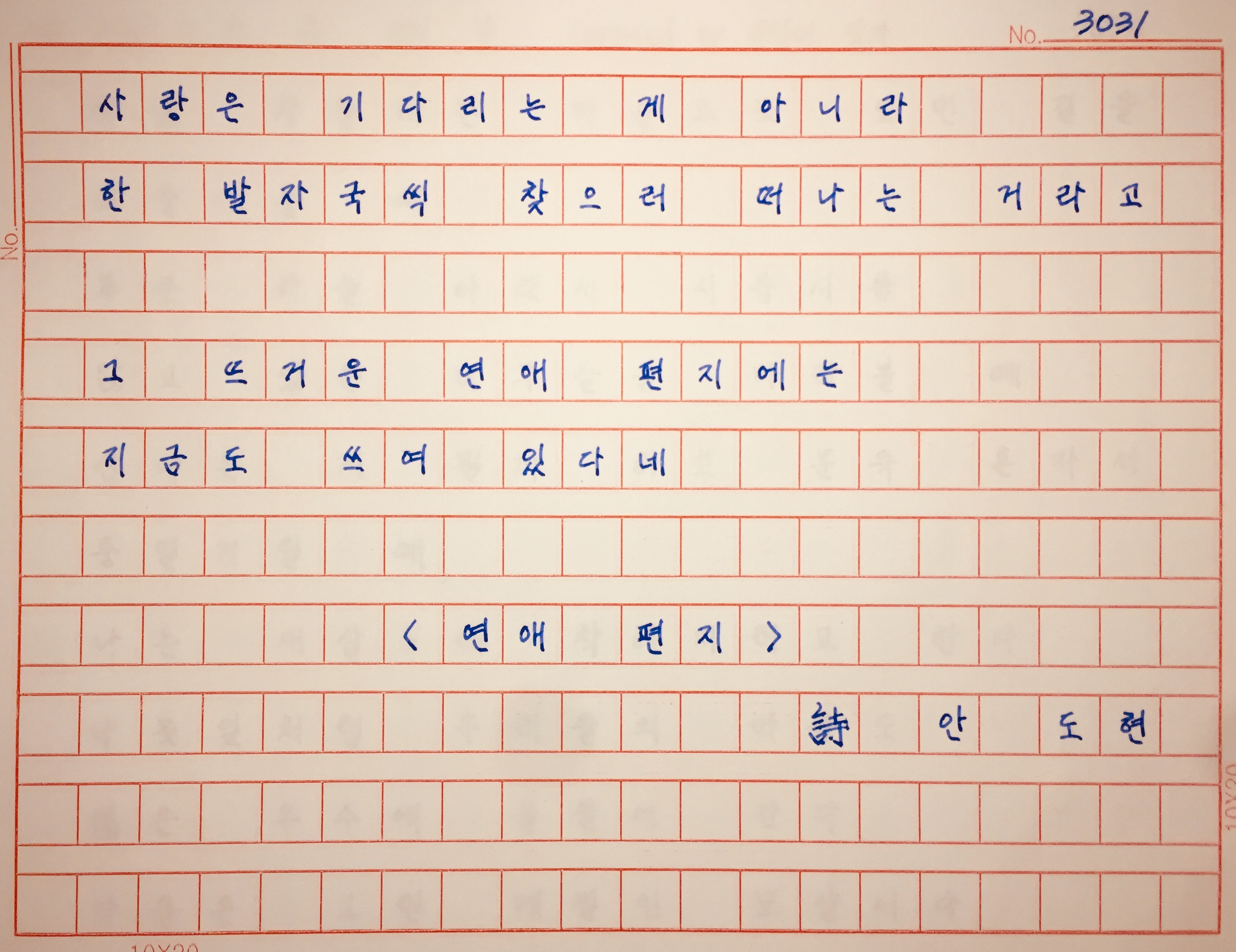 그 수신인은 기억이 가물가물해도, 연애편지를 쓰던 그때의 풋풋함만은 내 안의 어딘가에 남아 있겠지요.