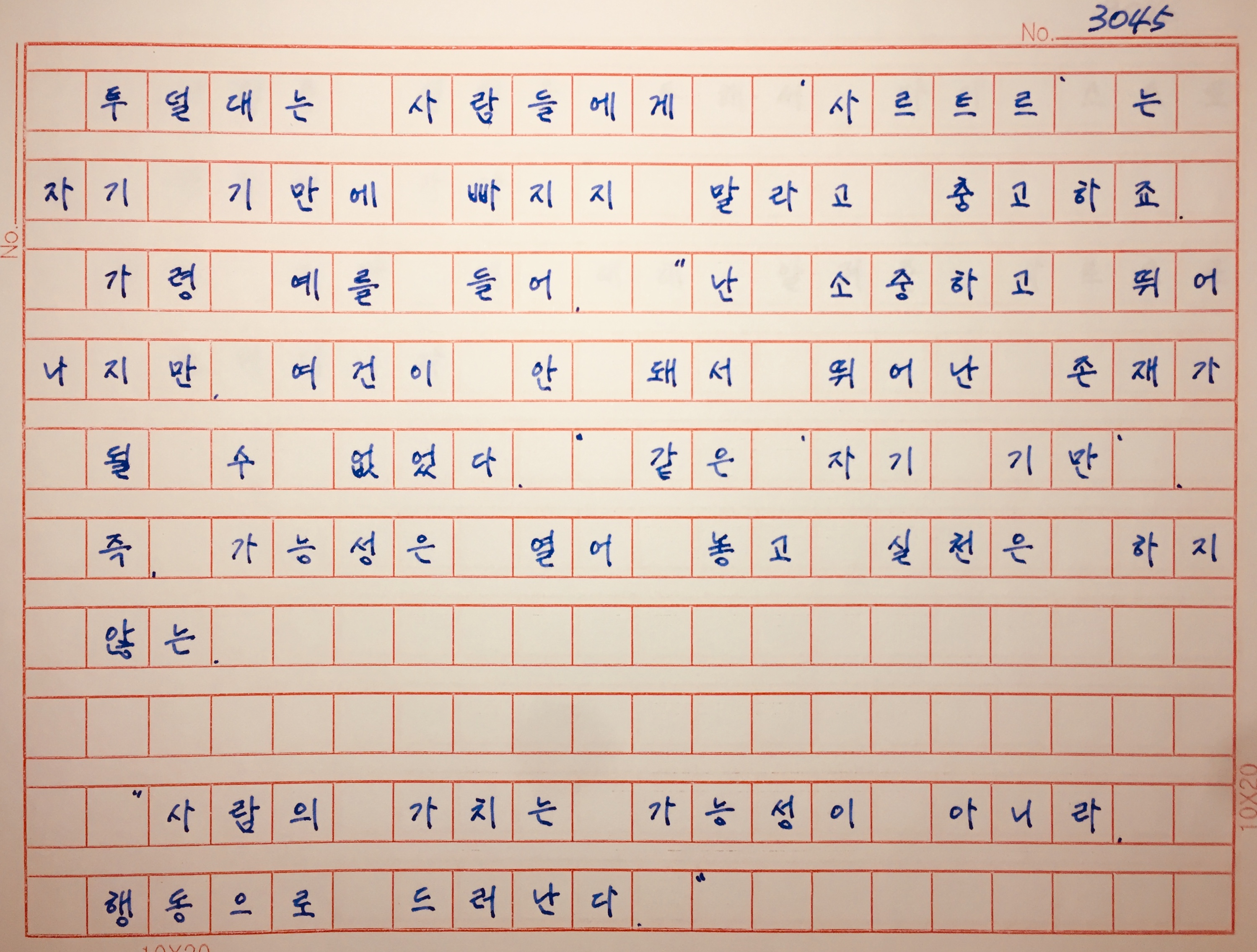 "사르트르의 이 조언을 우리가 늘 쓰는 말로 바꾸어 보면 이런 말이 되겠지요.