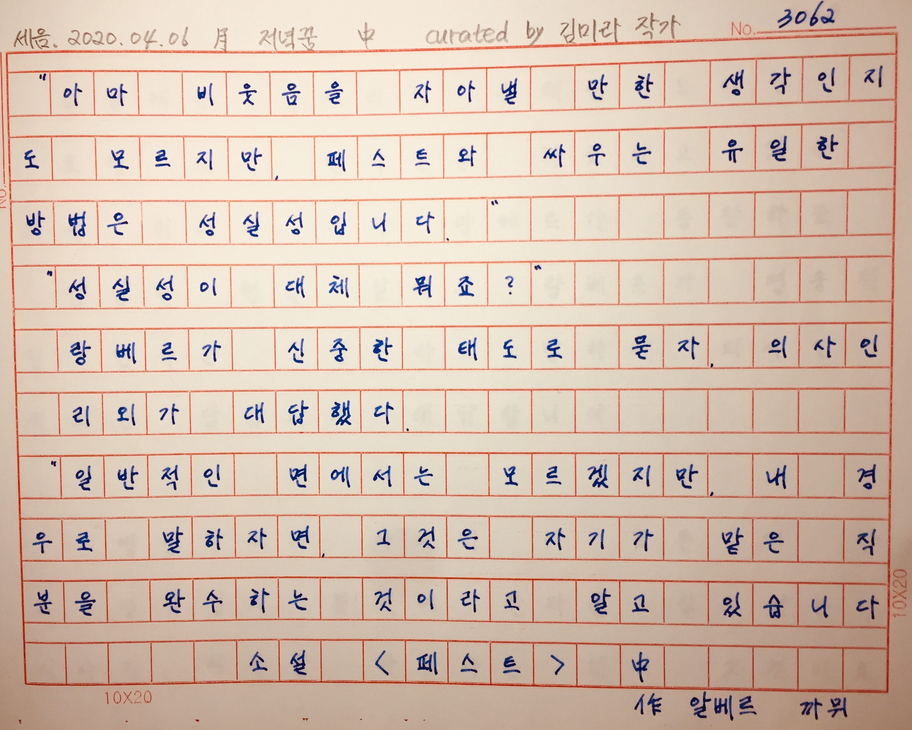 리외가 말하는 성실성이 지금 우리에게 가장 소중한 덕목이겠죠.