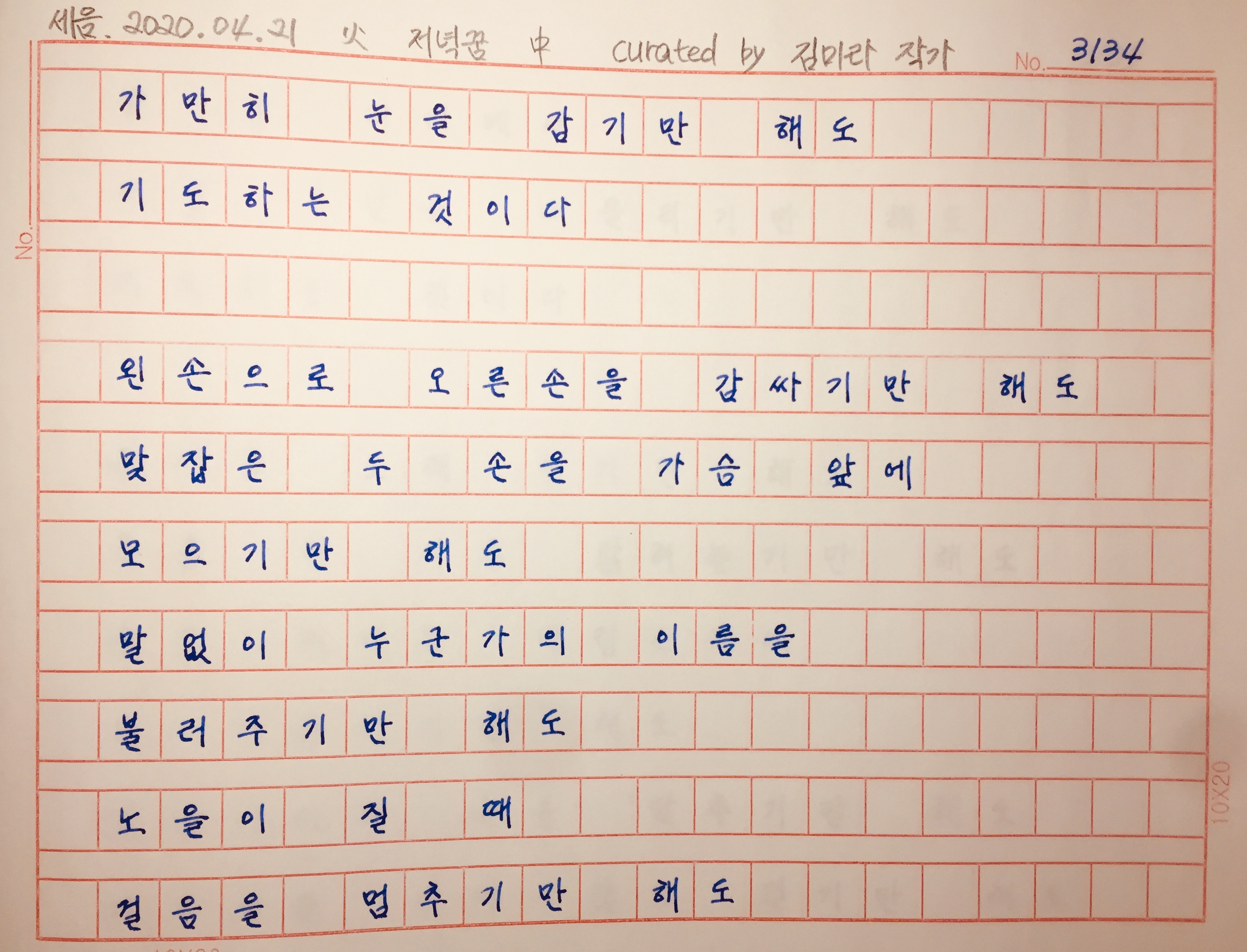 주변에 내려앉는 적막도 기도라는 생각이 들고,