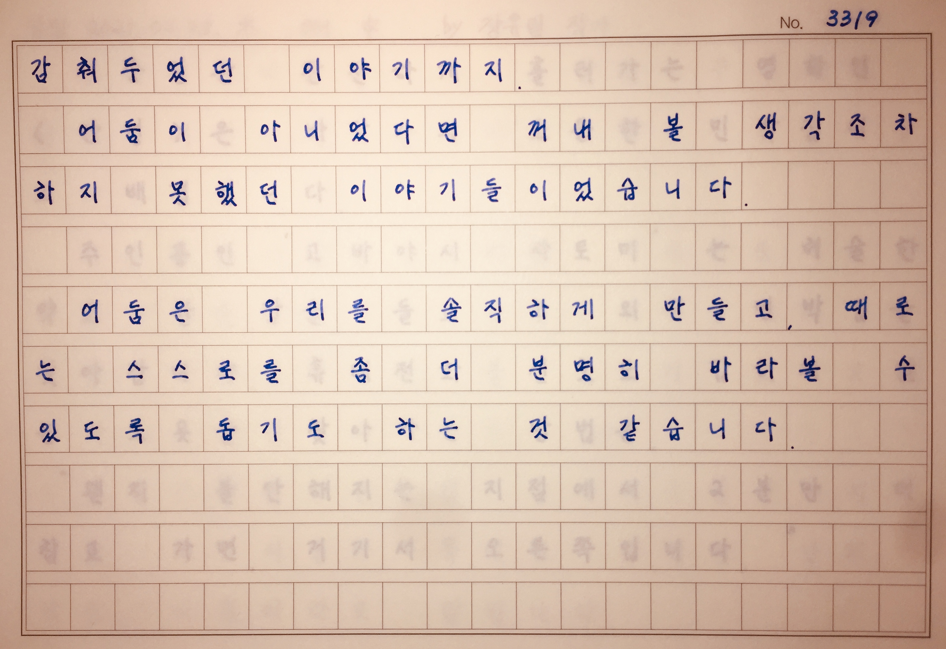 "빛이 가라앉은 자리에는 어떤 이야기들이 떠오를 지 궁금해집니다."