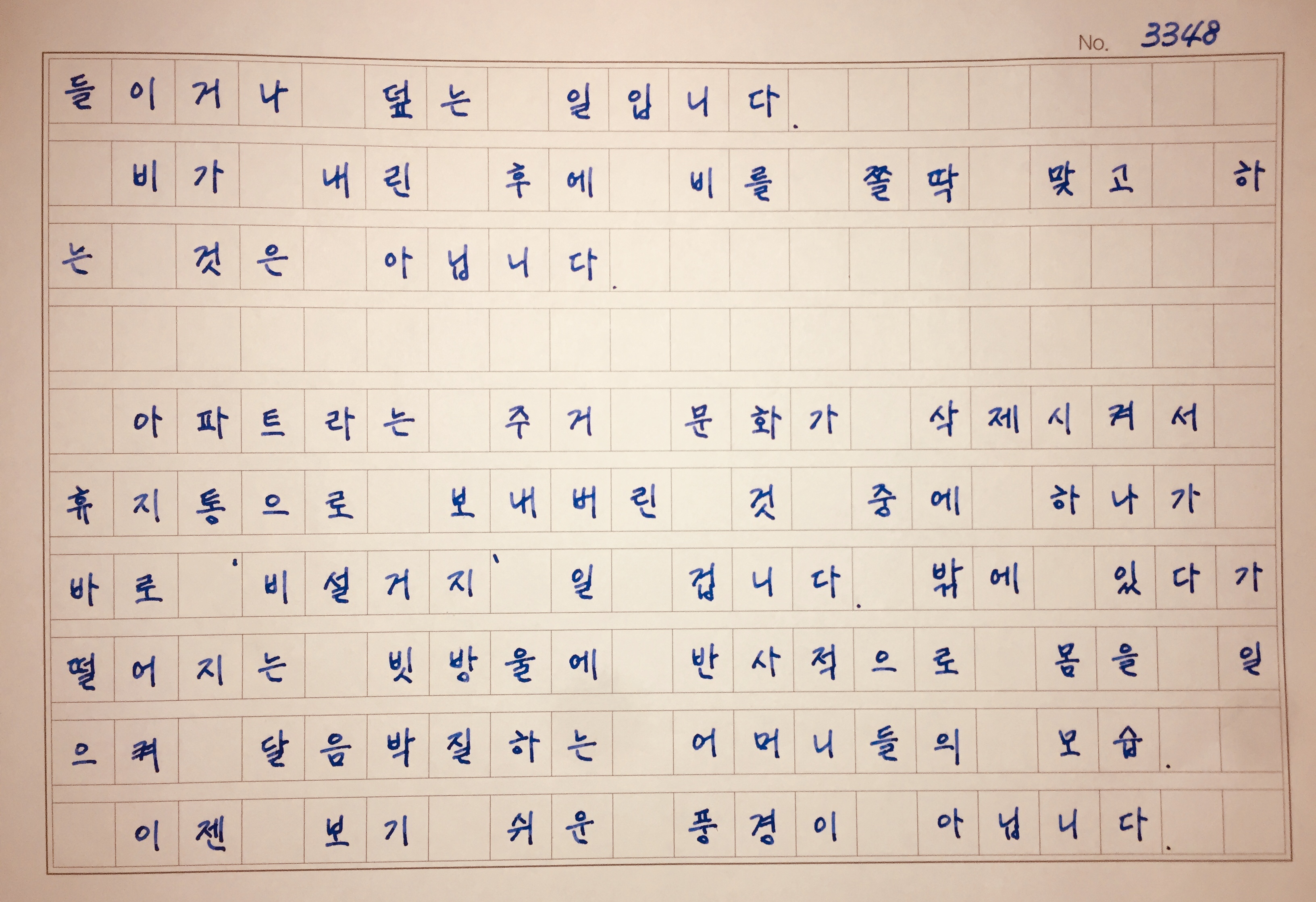 그리고 비는 그쳤고, 해는 다시 쨍하고 구름사이를 비집고 나타났다."