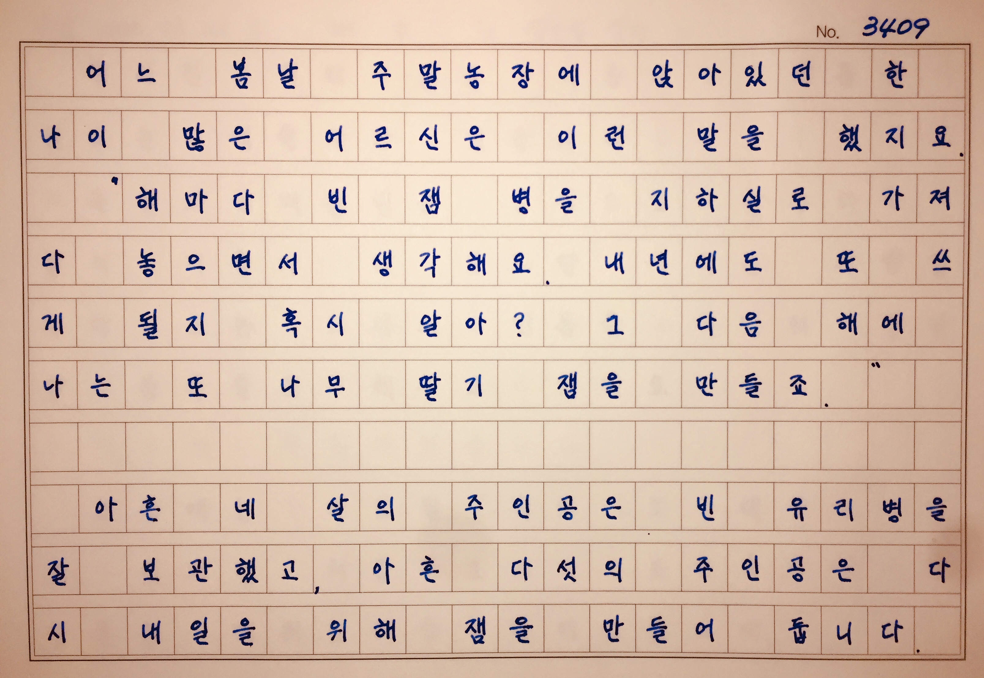 충실했던 오늘이 내일의 유리병 속에서 단맛으로 익어가고 있습니다."