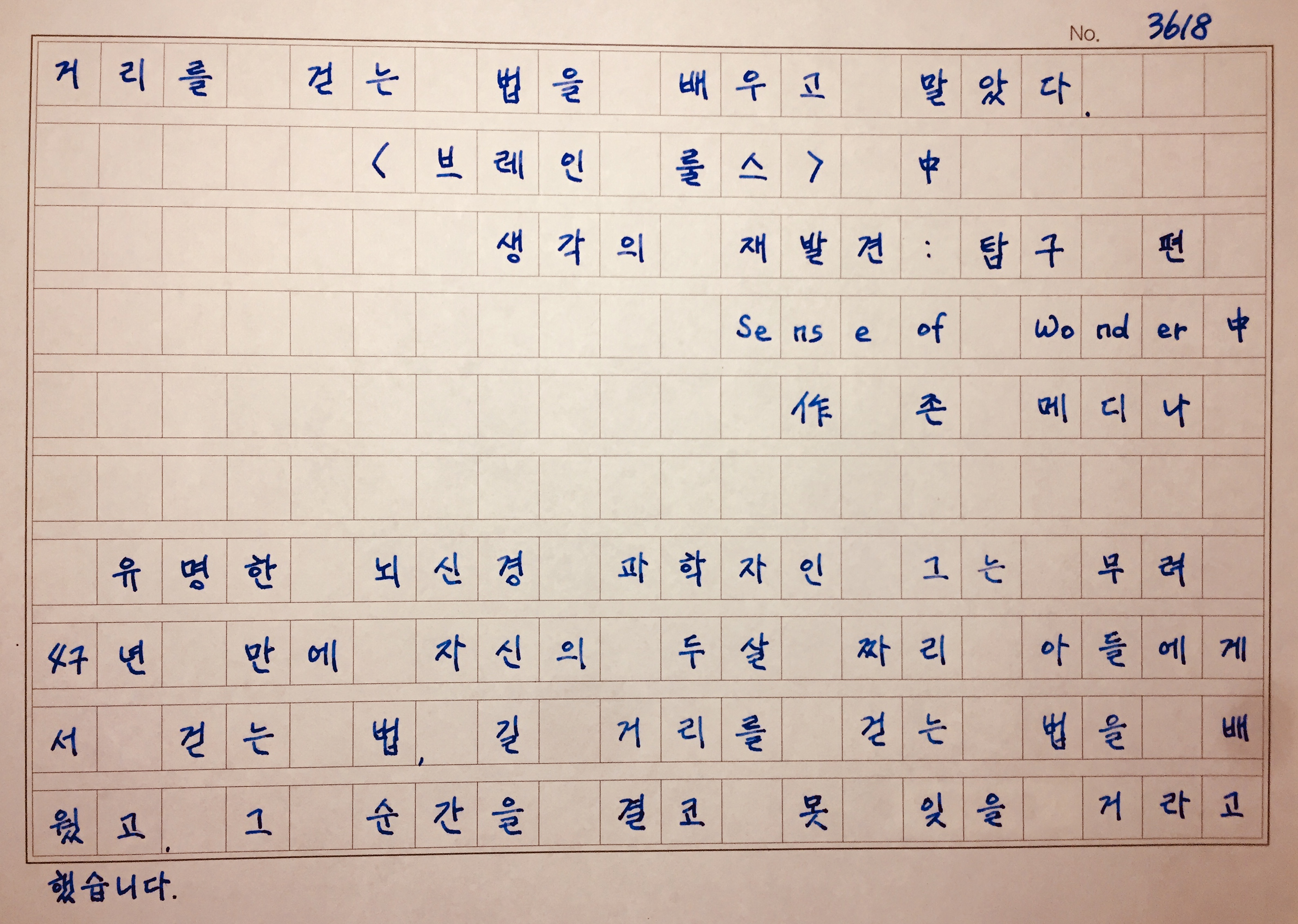 아들에게서 배운 거리를 걷는 법에 대한 감동이 더 오래갔을 겁니다."