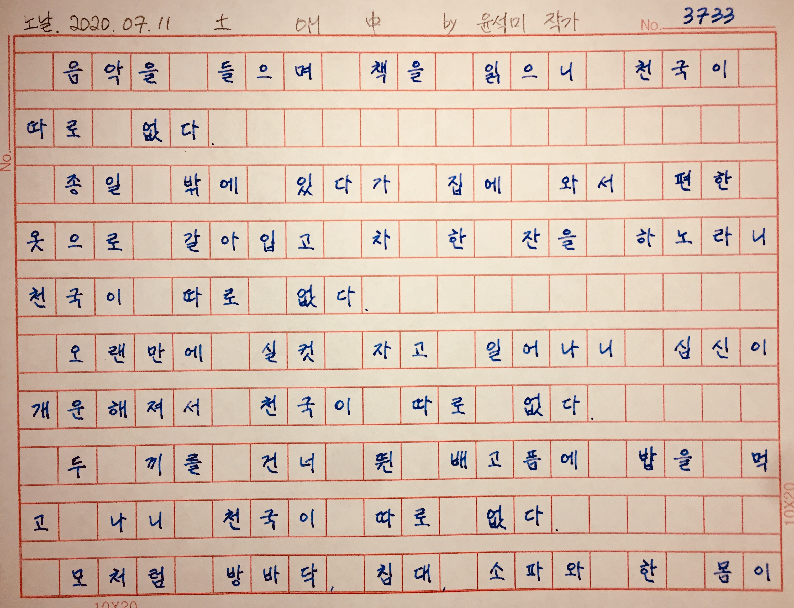 "천국이 따로 없는 좋은 순간들이 이렇게나 많았구나."