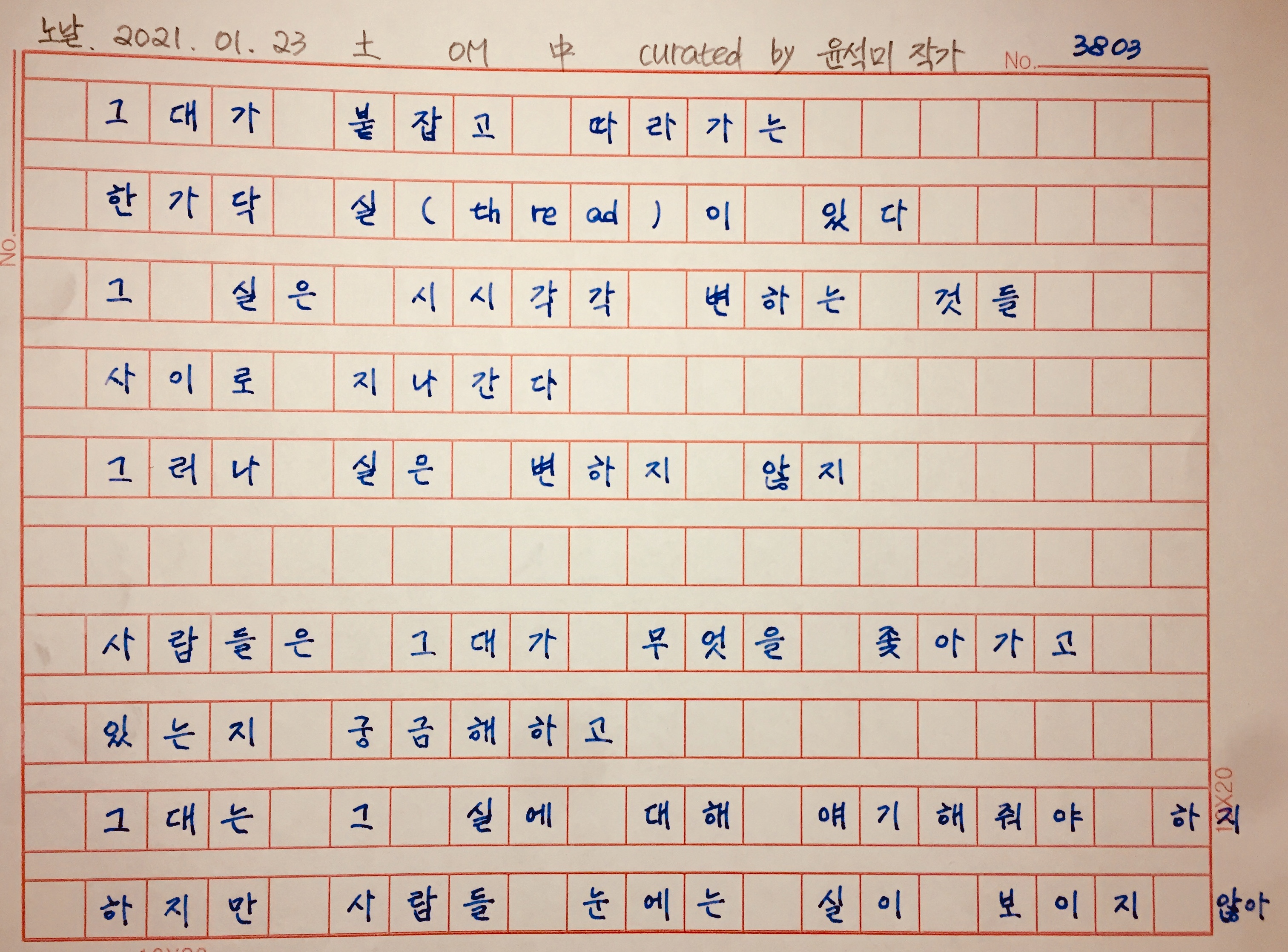 무슨 일이 벌어져도 내가 잡고 가는 실을 놓지 않는 것이었습니다.
