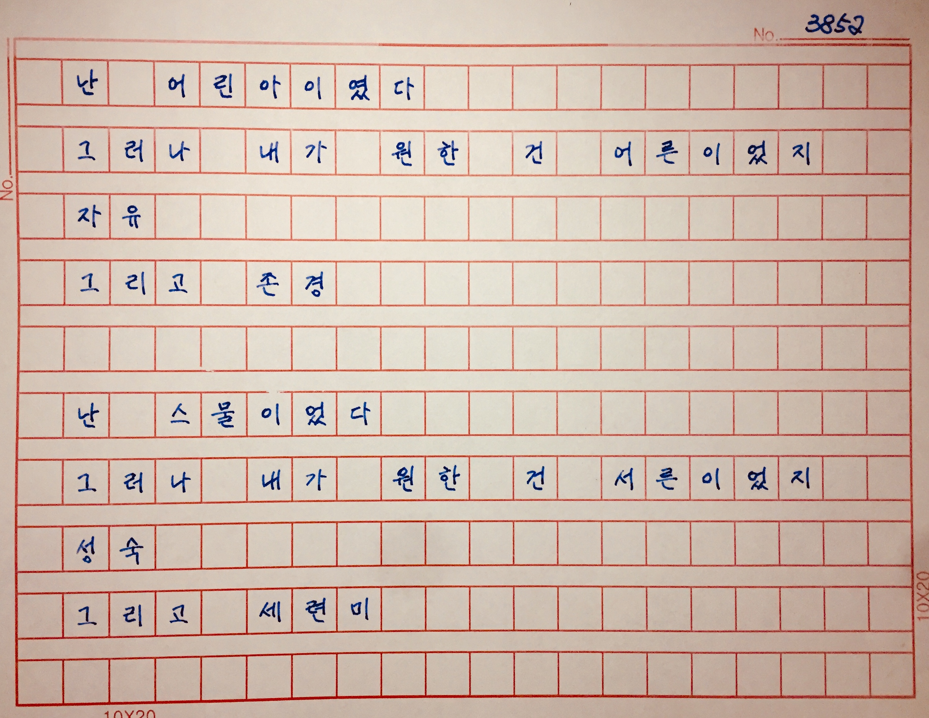"이 시는 레흐만이 열네 살 때였던 1989년에 시카코 트리뷴 신문에 기고했던 시였습니다.