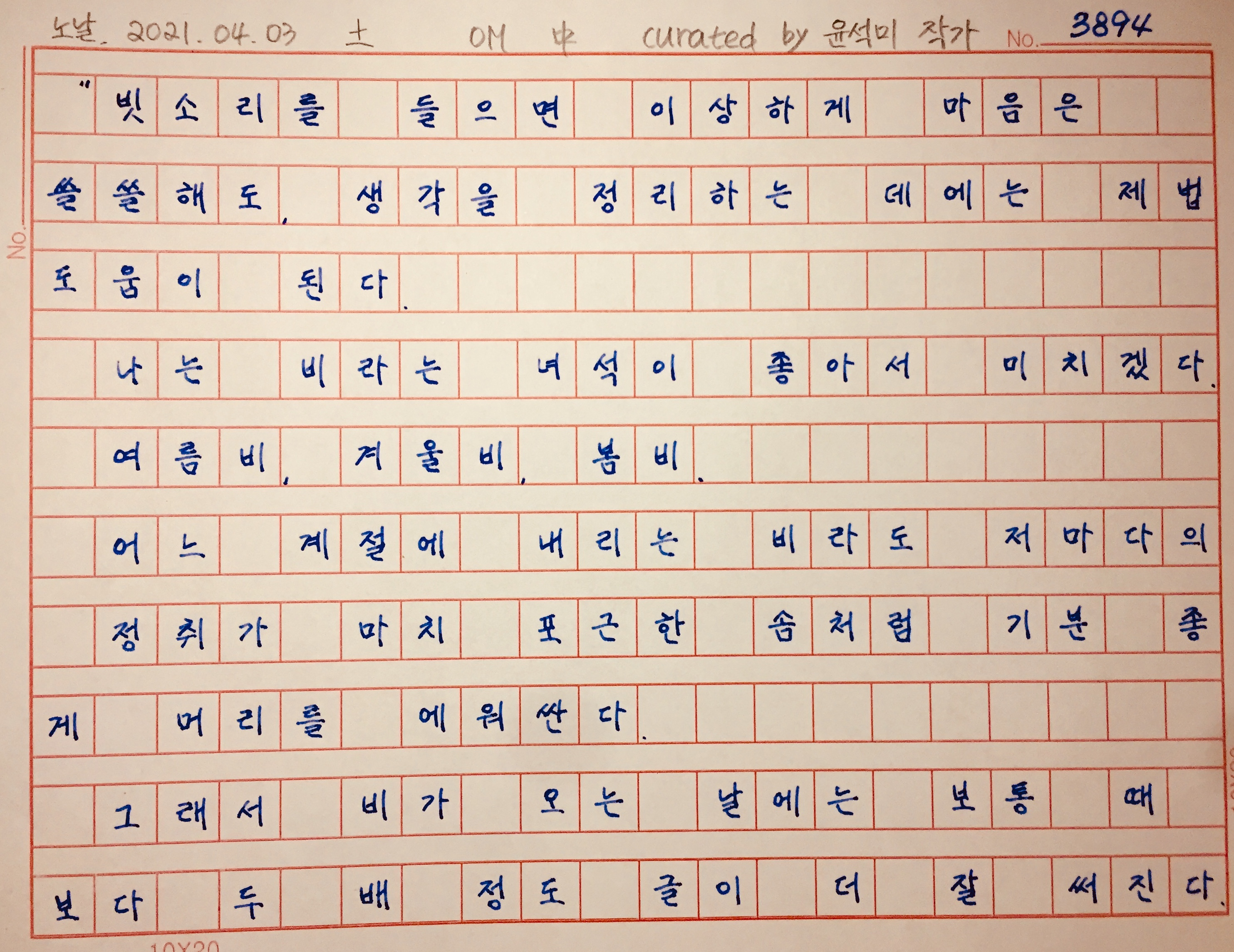 말끔하게 정리를 끝낸 생각들이 비에 홀딱 씻겨 내려갈 수도 있겠죠.