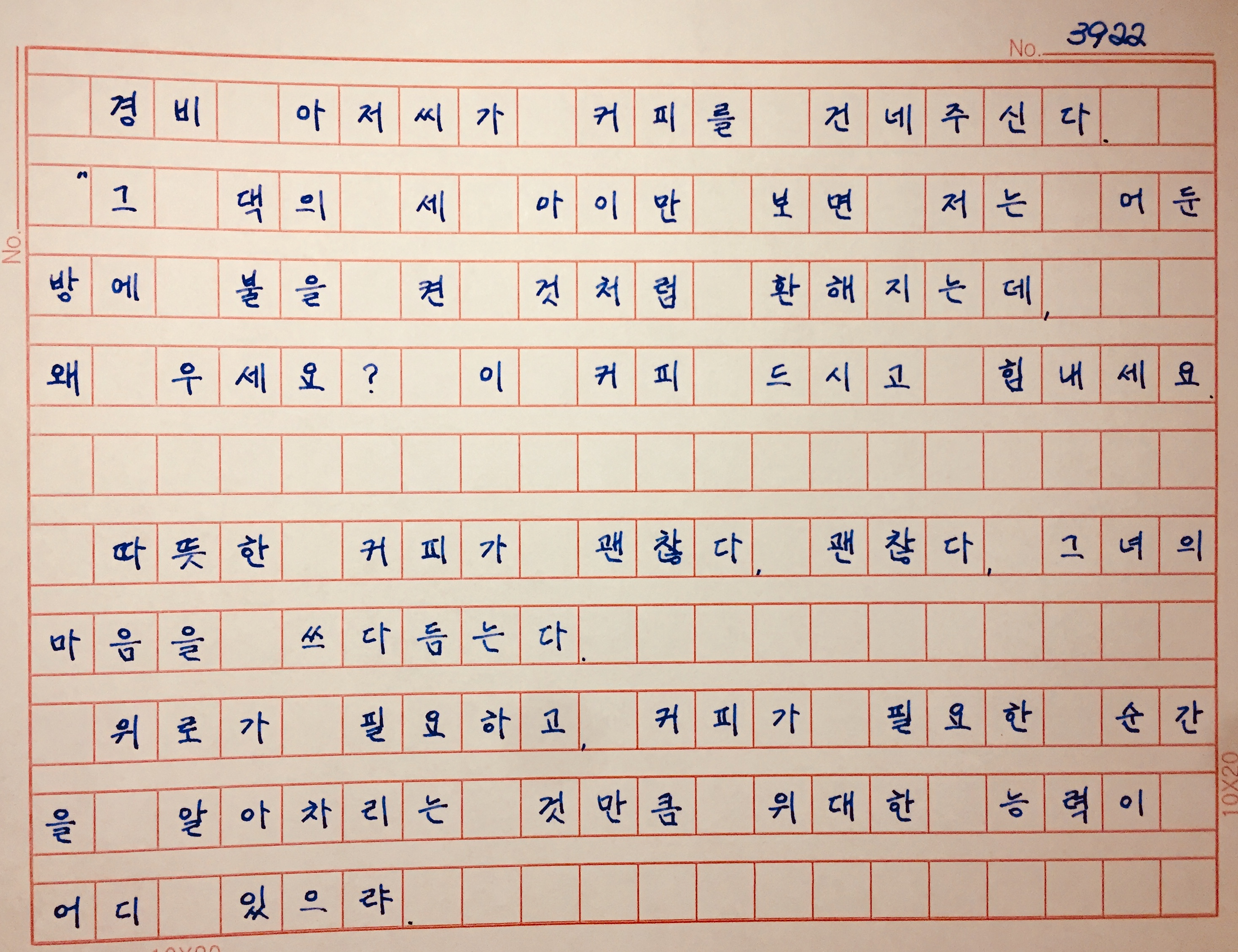 경비 아저씨가 건넨 종이컵의 온기 같은 것을 필요할 때,