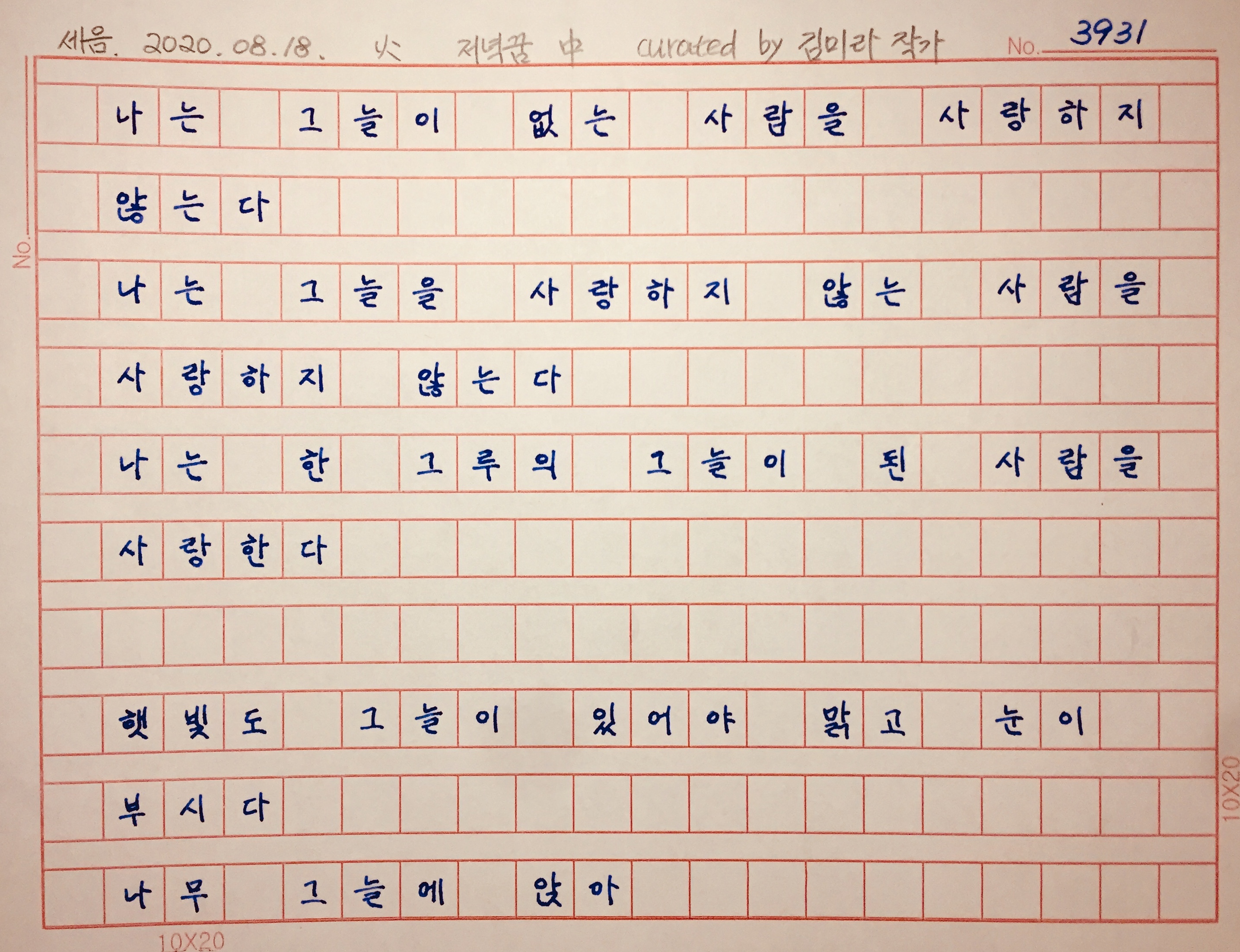 그늘이 되어주고 눈물을 닦아줄 수 있는 사람.