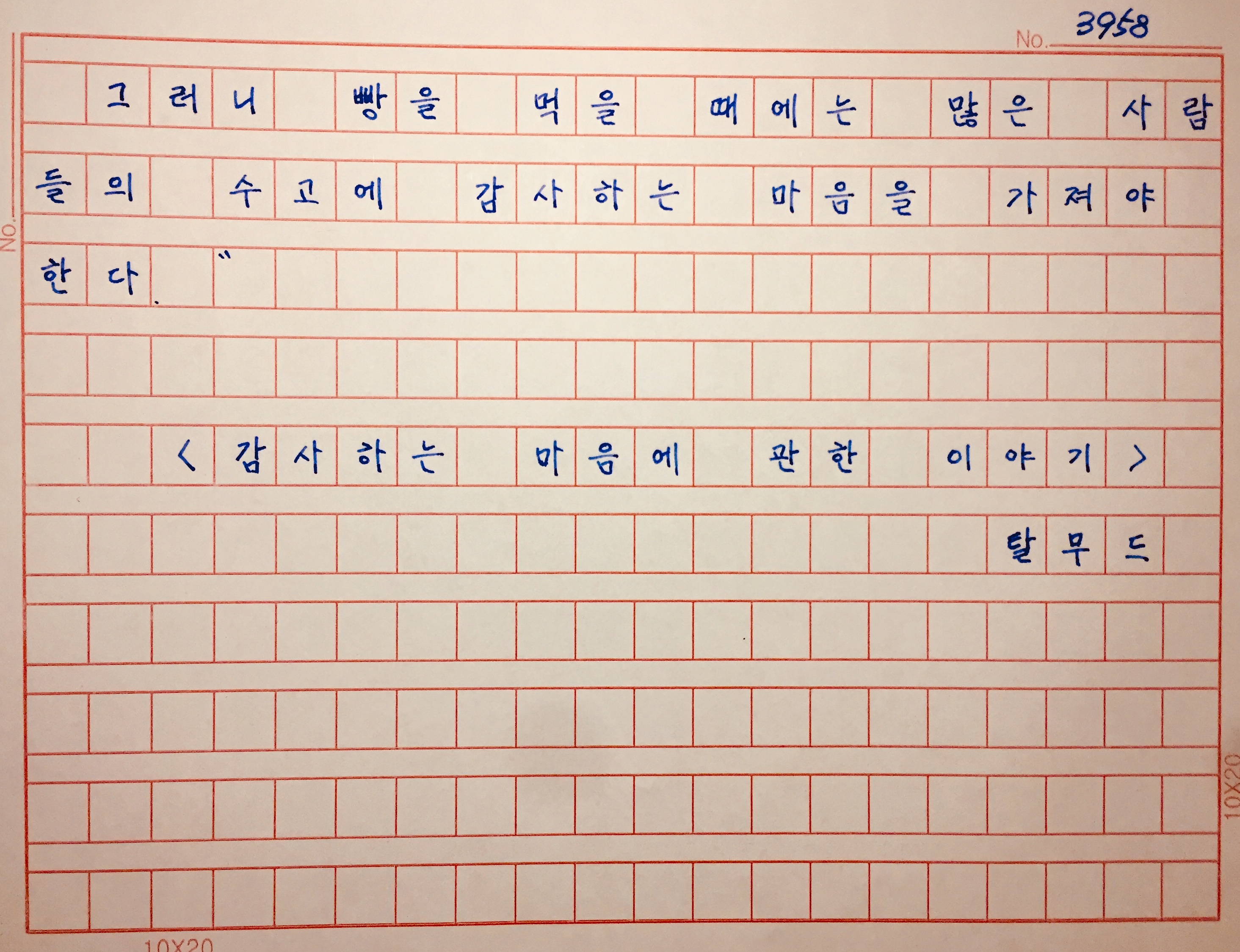 옷을 입을 때에도 많은 사람들에게 감사하는 마음을 가져야 한다는 것입니다.