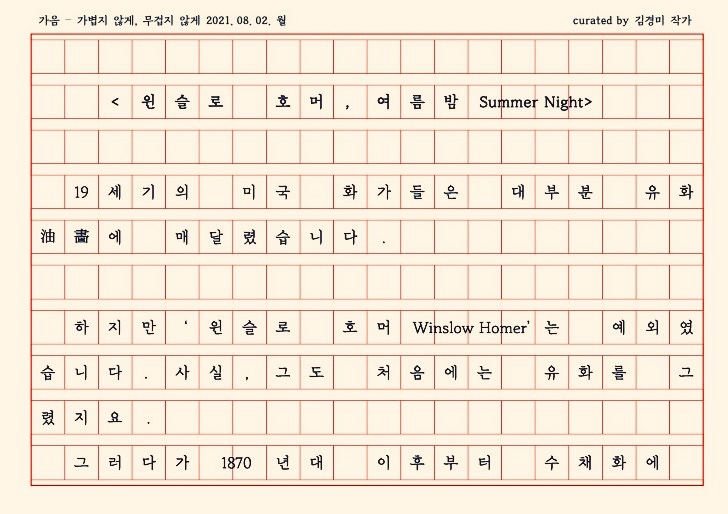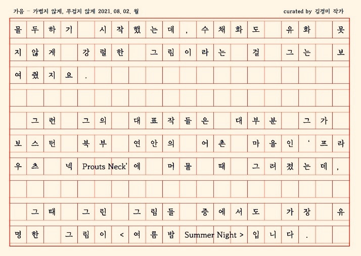 조현 작가, <말들의 정류소>6-윈슬로 호머의 여름밤