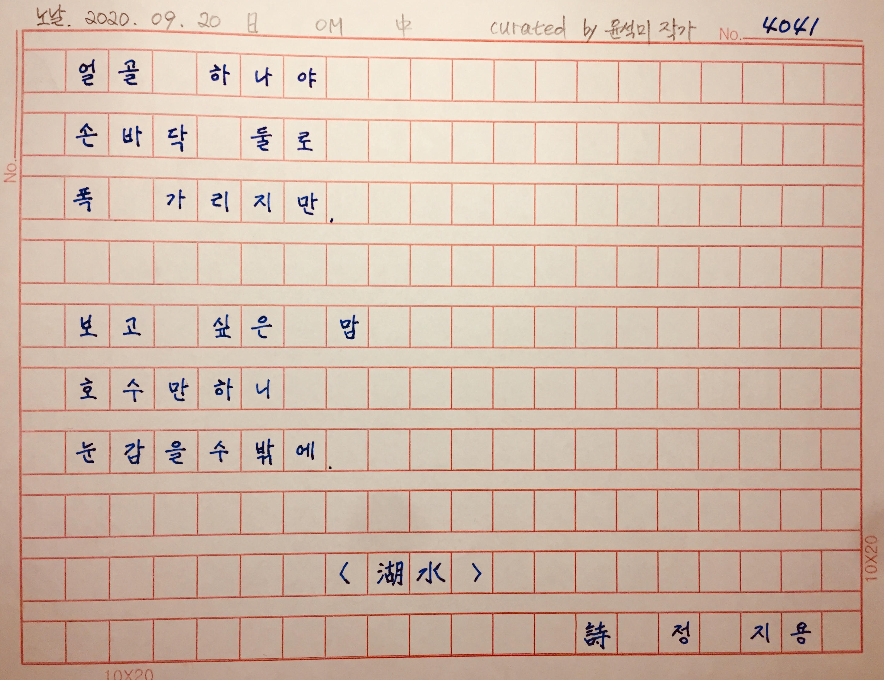제목인 호수도 한글이 아니라 한자로 湖水였습니다."