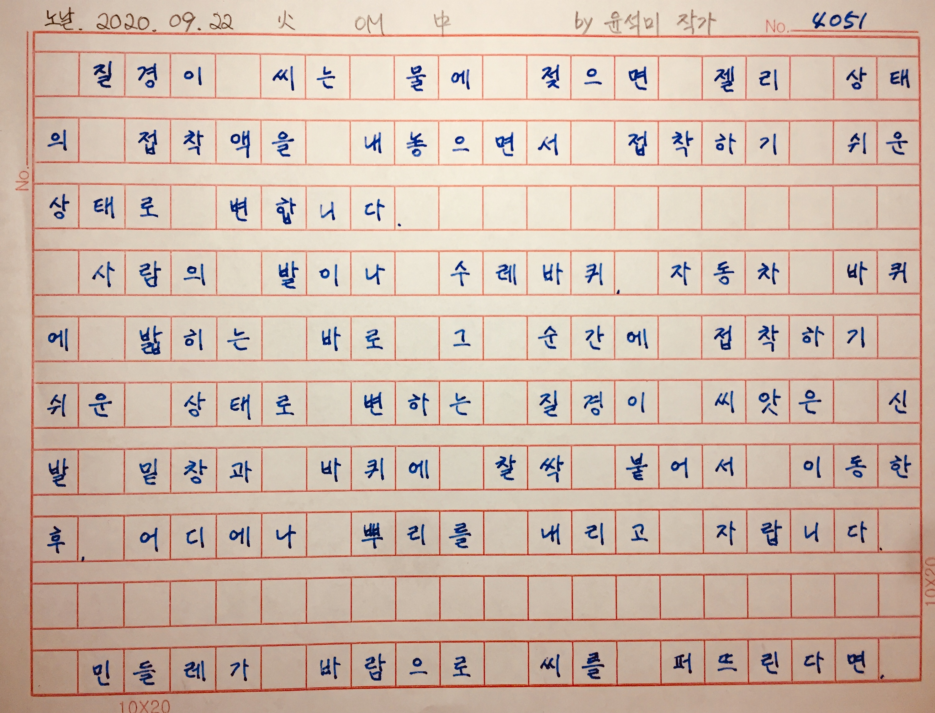 밟히기 쉬운 길가를 골라서 살아온 질경이는,