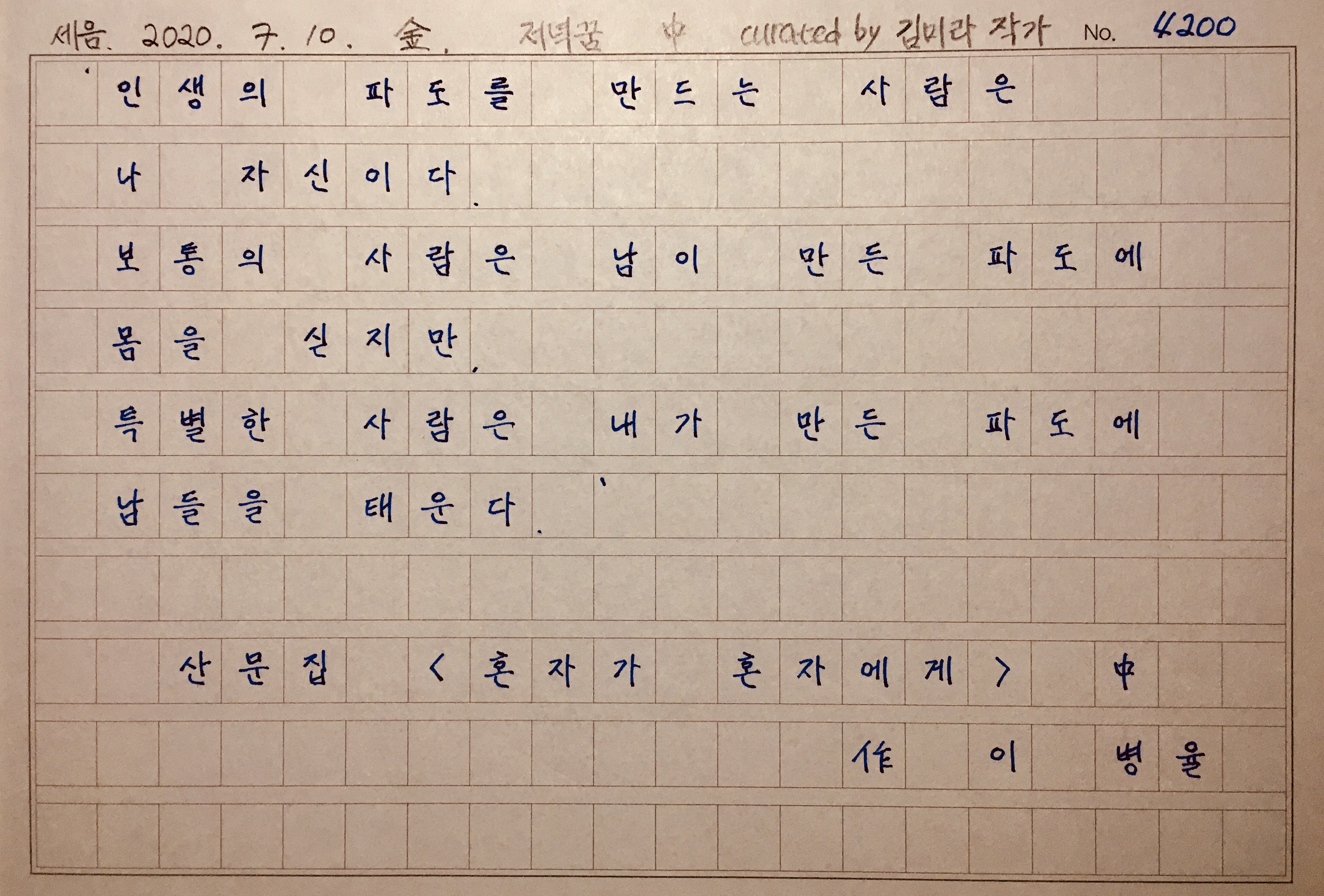 남이 보낸 것이 아니라 언제인가의 내가 지금의 나에게 보낸 파도일 거라는 생각을