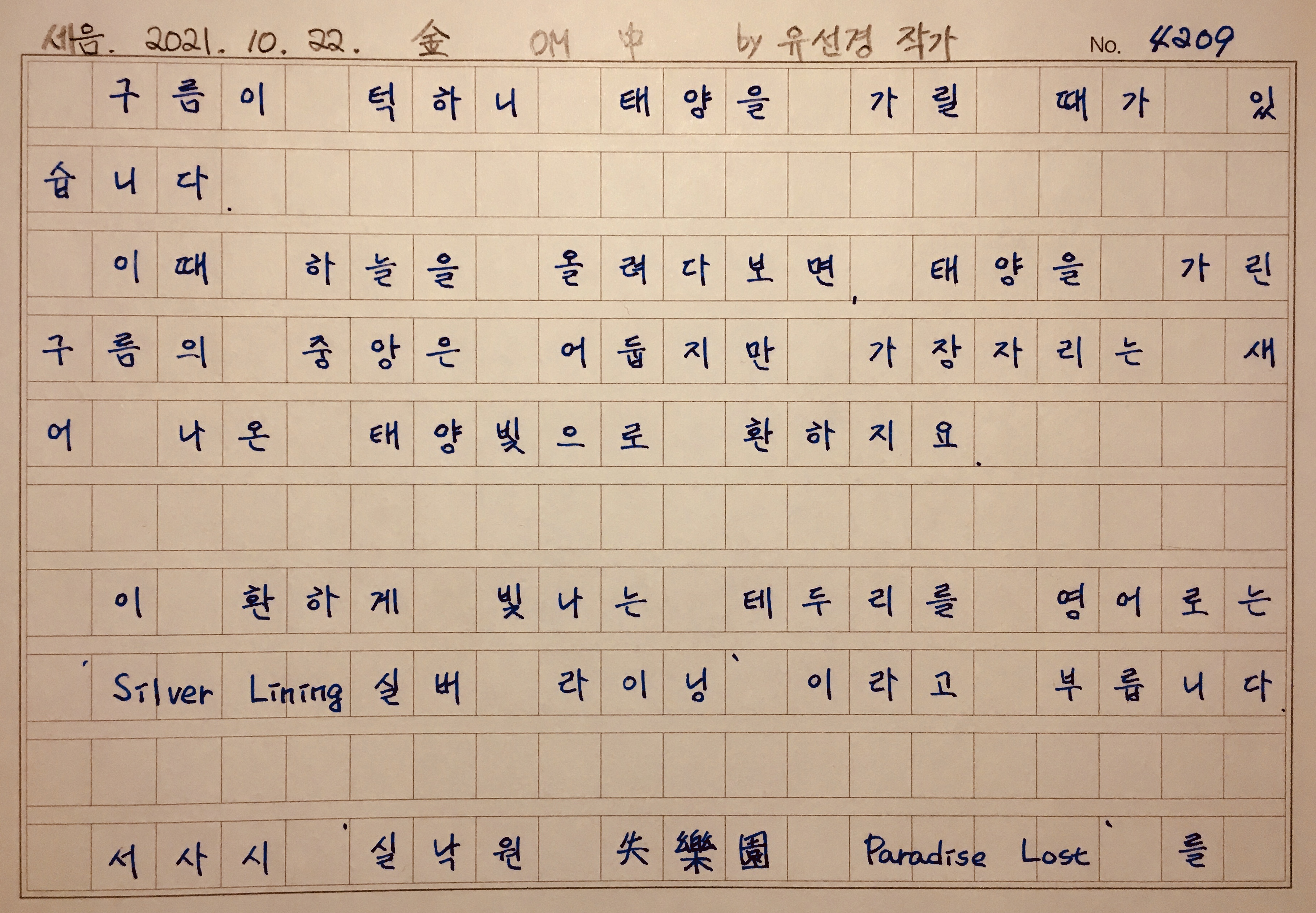 "요즘 거리에서 노랗게 물들어가는 은행잎이, 이 실버 라이닝을 닮은 것 같습니다.