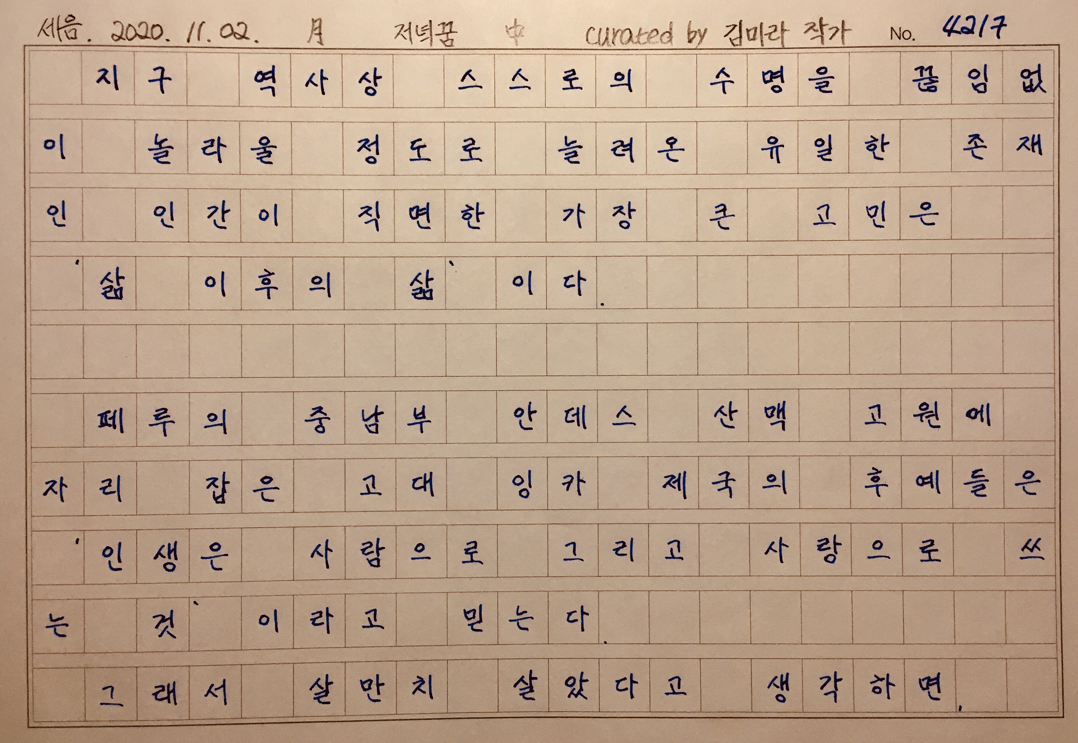 세상 일에 스스로 손을 놓은 안데스의 사람들은 그 홀가분함과 자유로움 단순함을 기쁘게 누리겠지 생각해 봅니다."