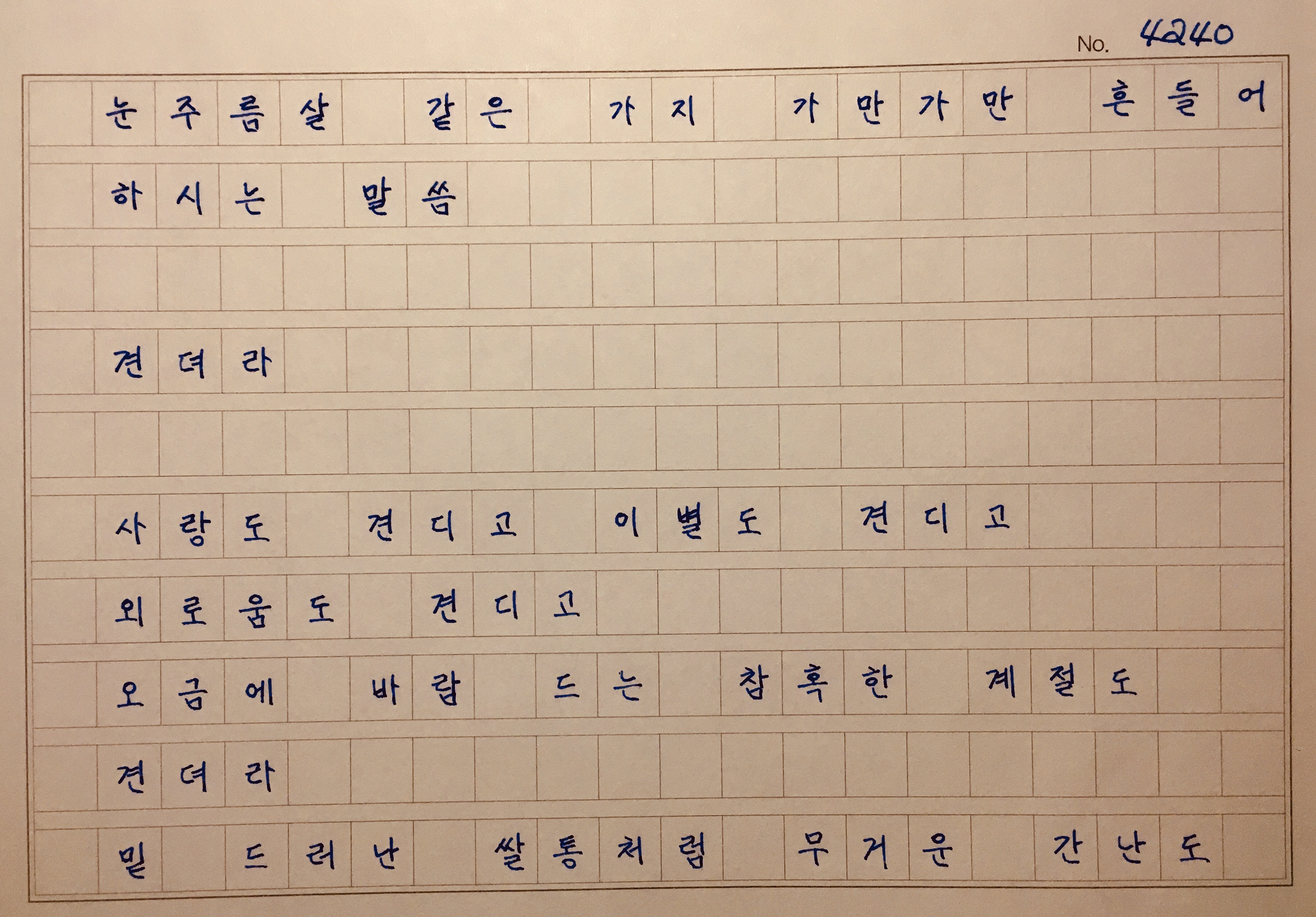 견디는 자가 강한 것이라는 말을 우리에게 해 주고 싶은 것이겠지.