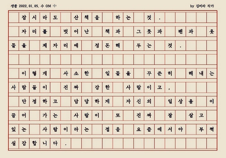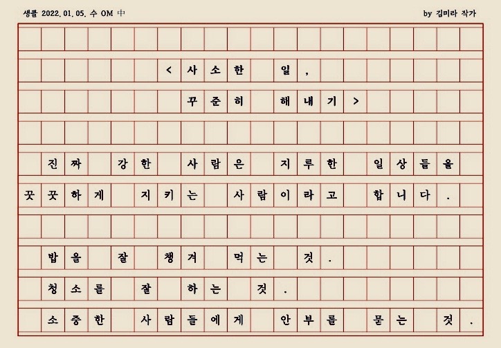 사소한 일상들을 지겨워하지 않고 잘 풀어가는 단단한 날들을