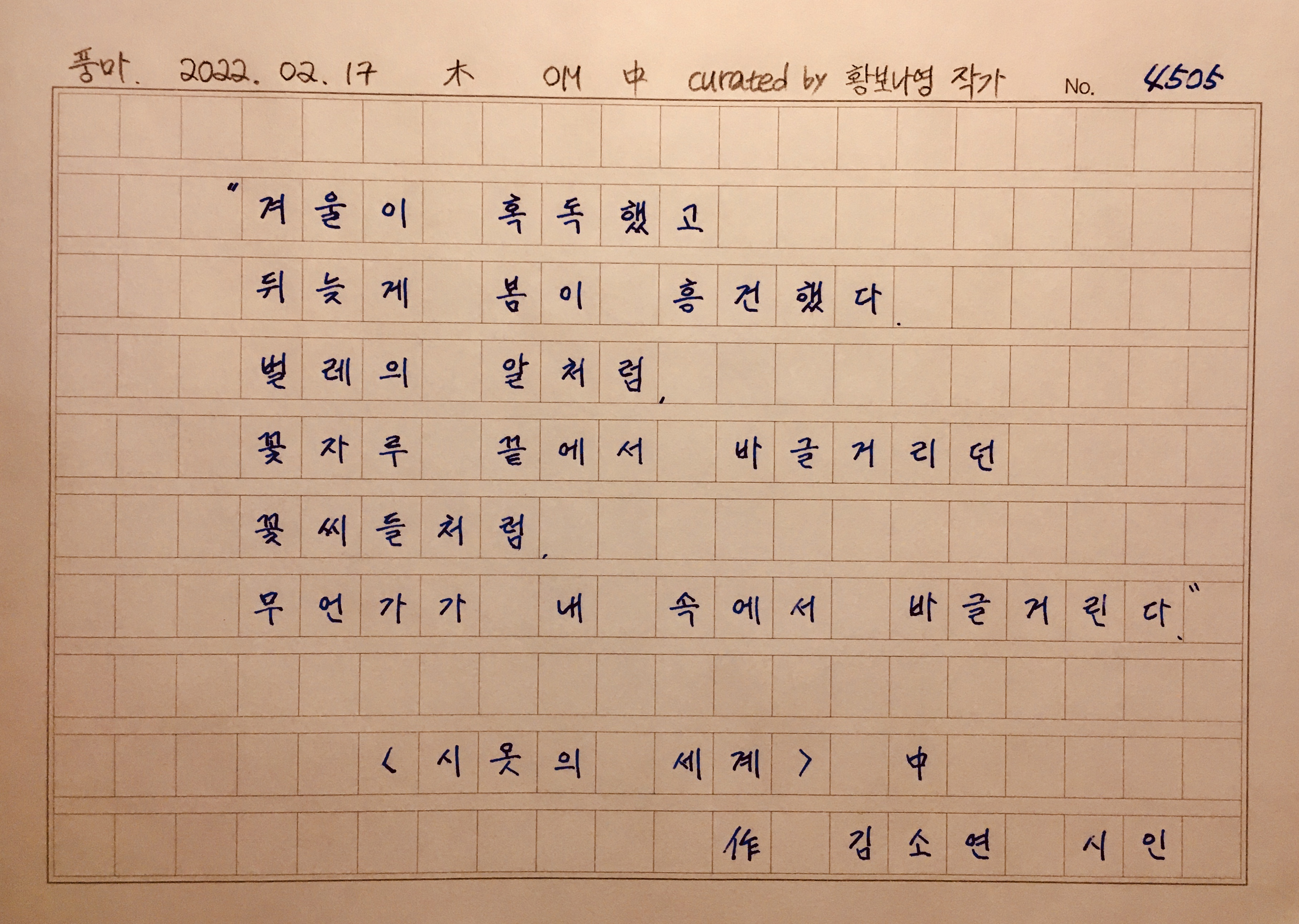 "봄을 예감하는 마음을 이렇게 표현할 수도 있네요.