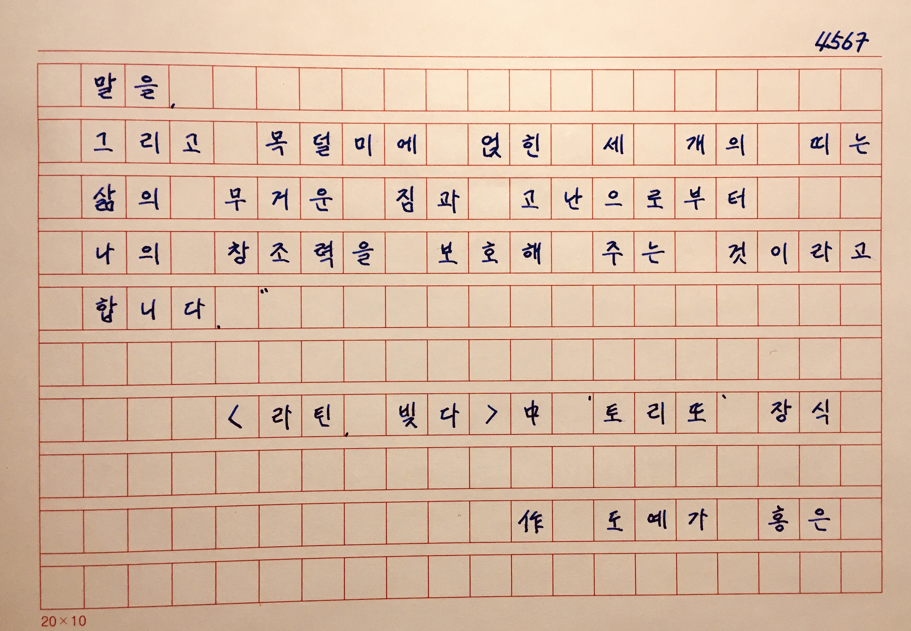 토리또가 나의 눈과 혀와 목덜미를 지켜 주길 바라면서 말입니다."