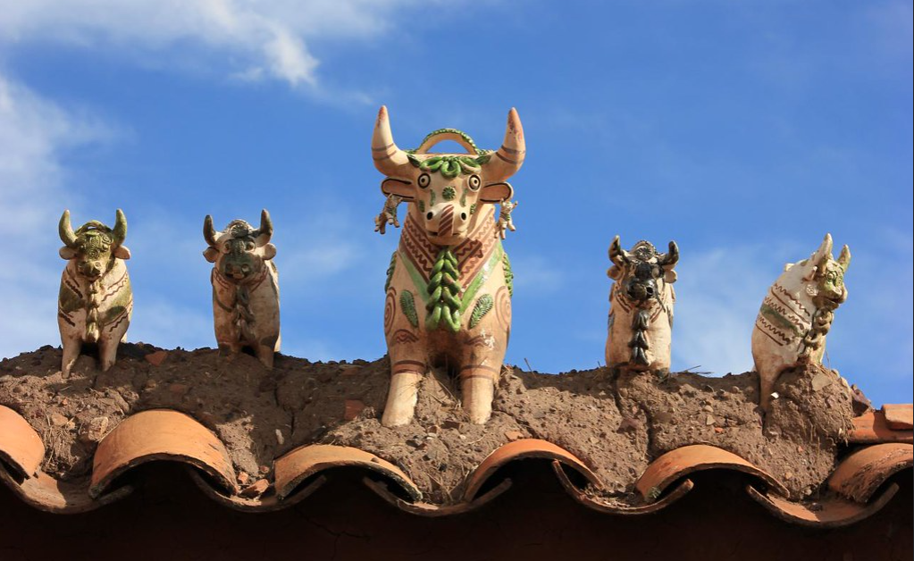 지붕에 소모양의 장식을 올리는 전통이 있다고 합니다.